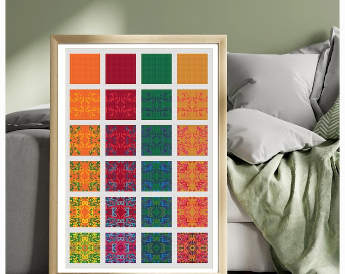 Cross stitch pattern mosaic, colorful, image size approx. 30 x 30 cm, cross stitch embroidery pattern PDF file instant download