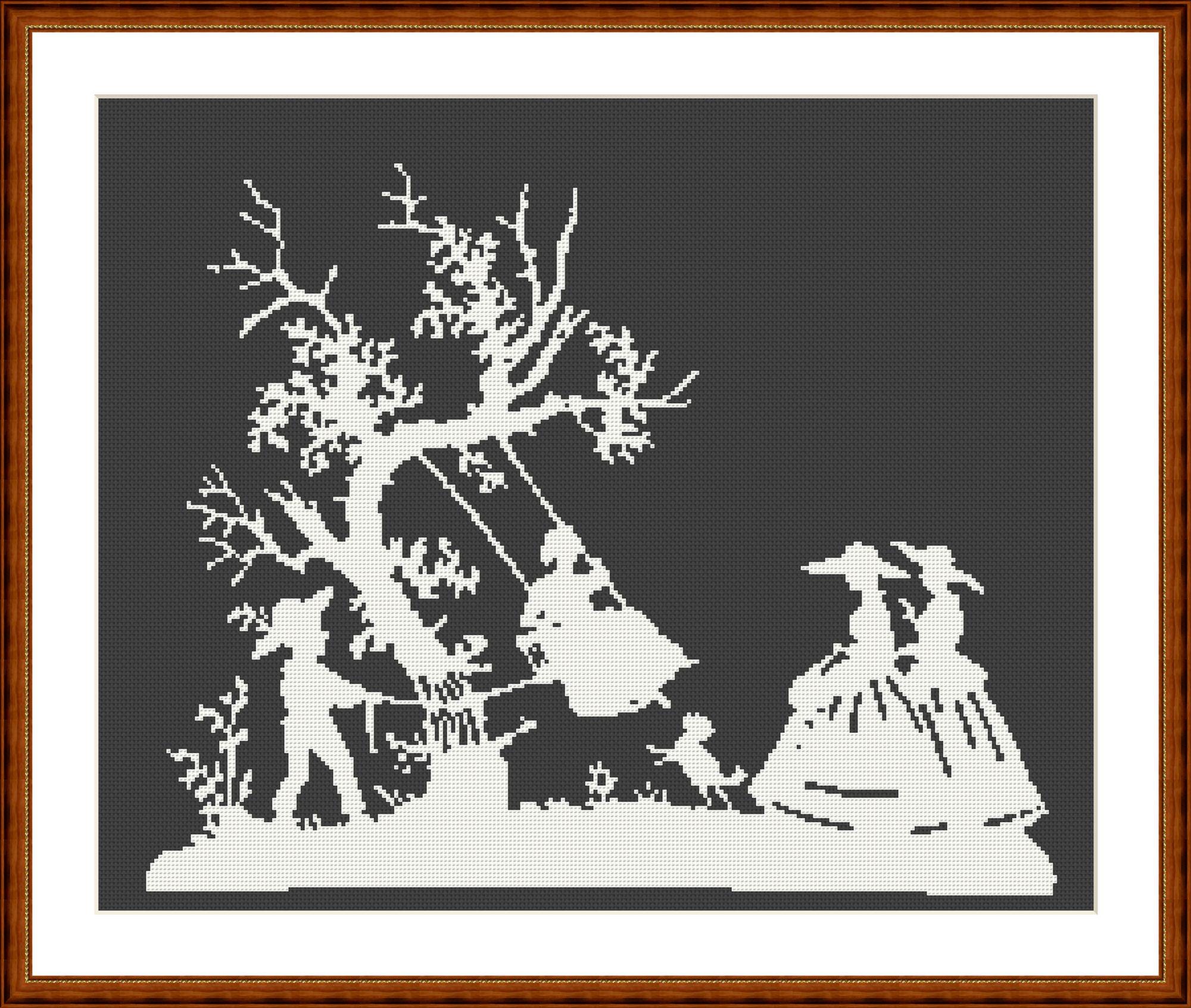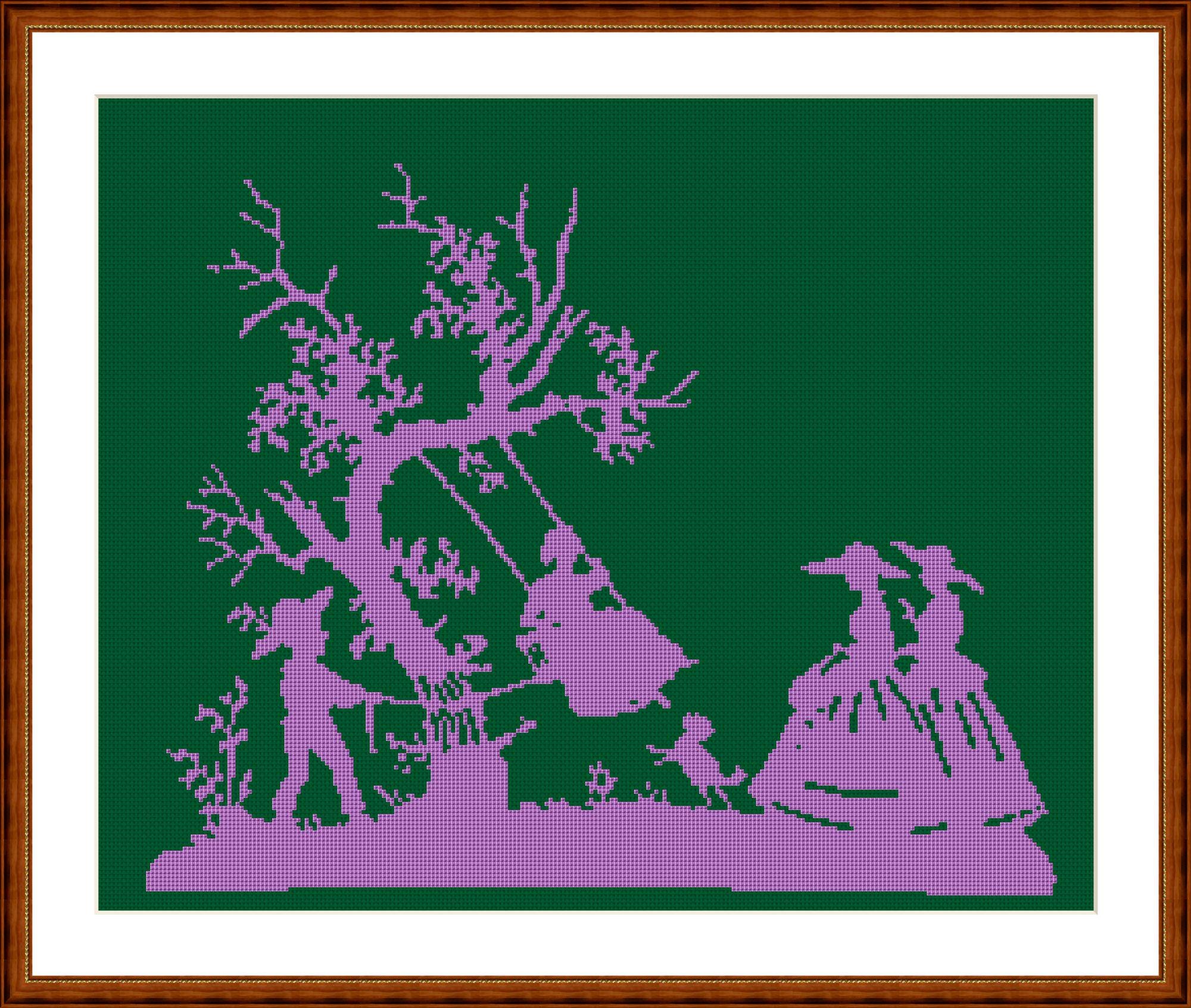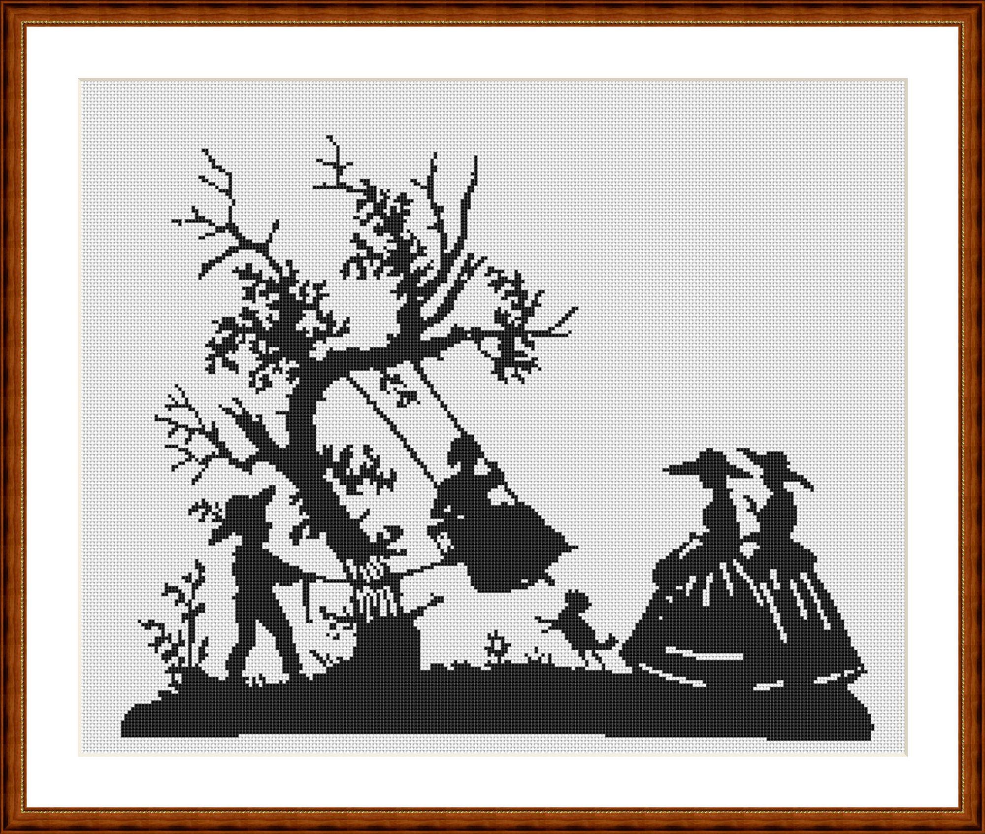 Cross-stitch pattern of playing children, image size approx. 35 x 30 cm, cross-stitch pattern PDF instant download, Victorian cross-stitch pattern