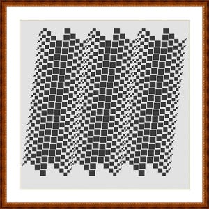 Cross stitch pattern squares optical illusion black and white, pattern size approx. 15 x 15 cm, cross stitch embroidery template PDF file instant download