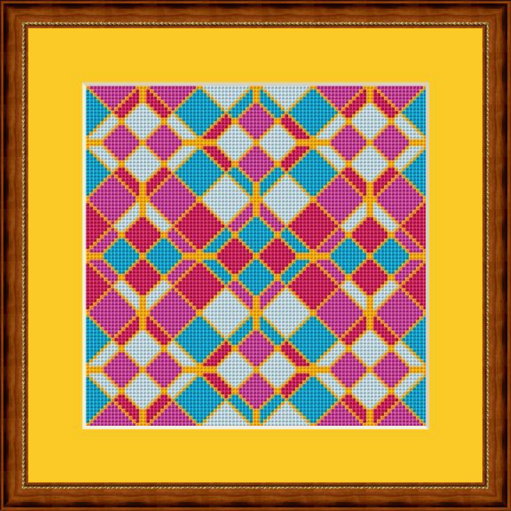 Patchwork pink blue yellow in cross stitch, pattern size approx. 15 x 15 cm, cross stitch embroidery pattern PDF file instant download
