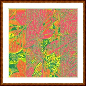 Cross stitch pattern leaf maple check pattern magenta orange, cross stitch embroidery pattern PDF file instant download