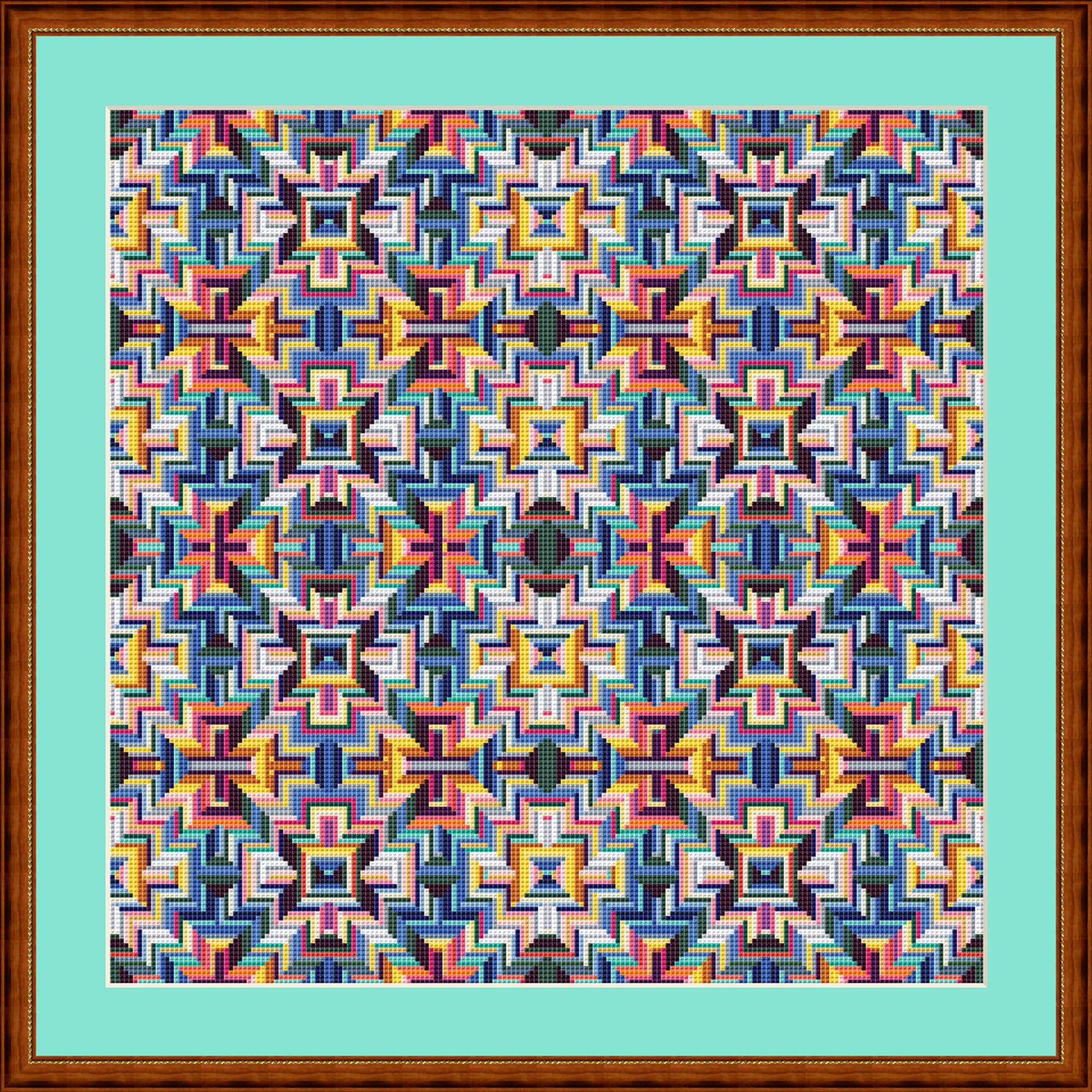 Cross stitch pattern patchwork lines colorful, image size approx. 30 x 30 cm, cross stitch embroidery pattern PDF file instant download
