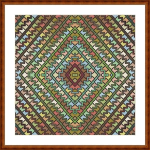 Cross stitch pattern square inside out orange blue, image size approx. 30 x 30 cm, cross stitch embroidery pattern PDF file instant download