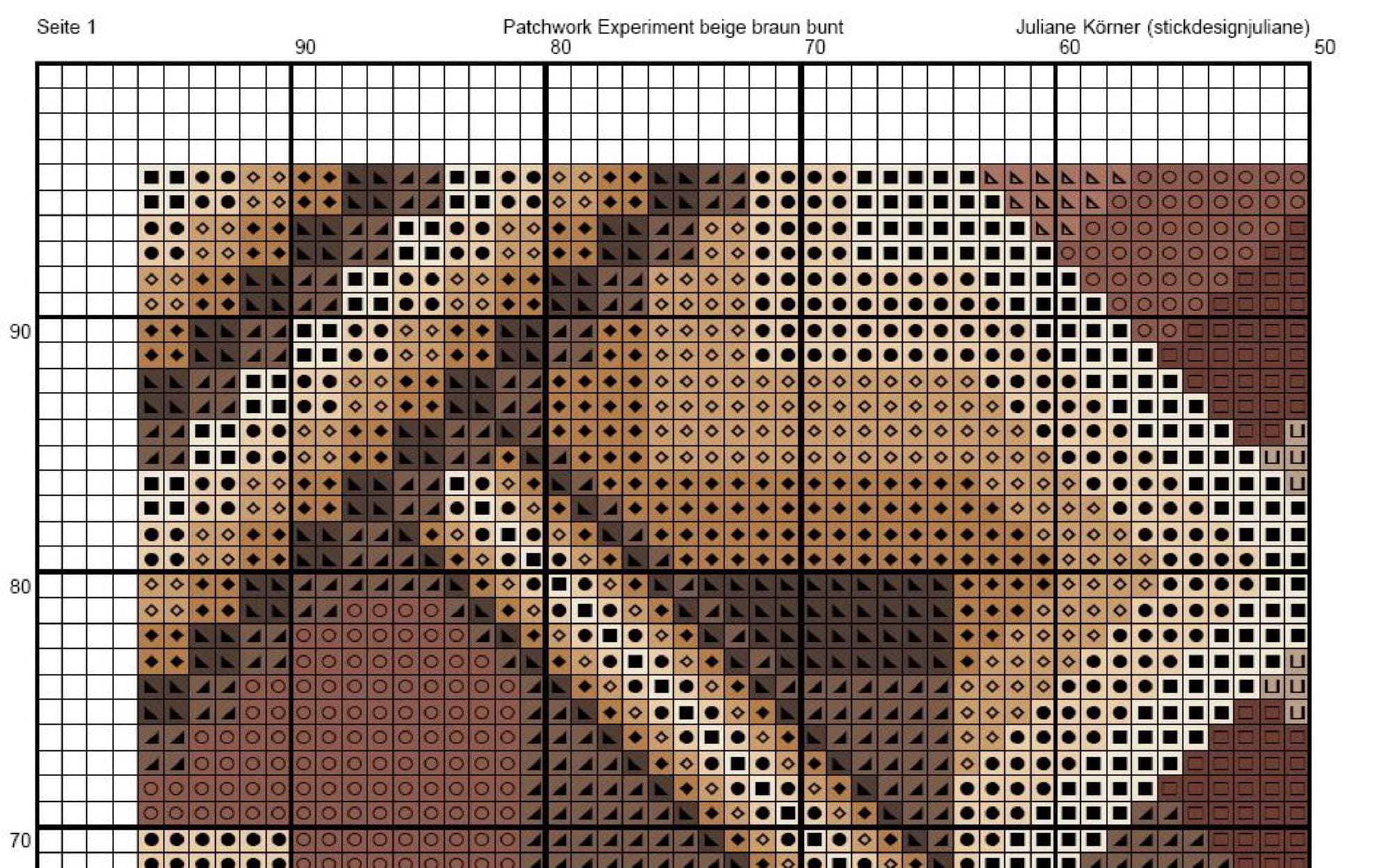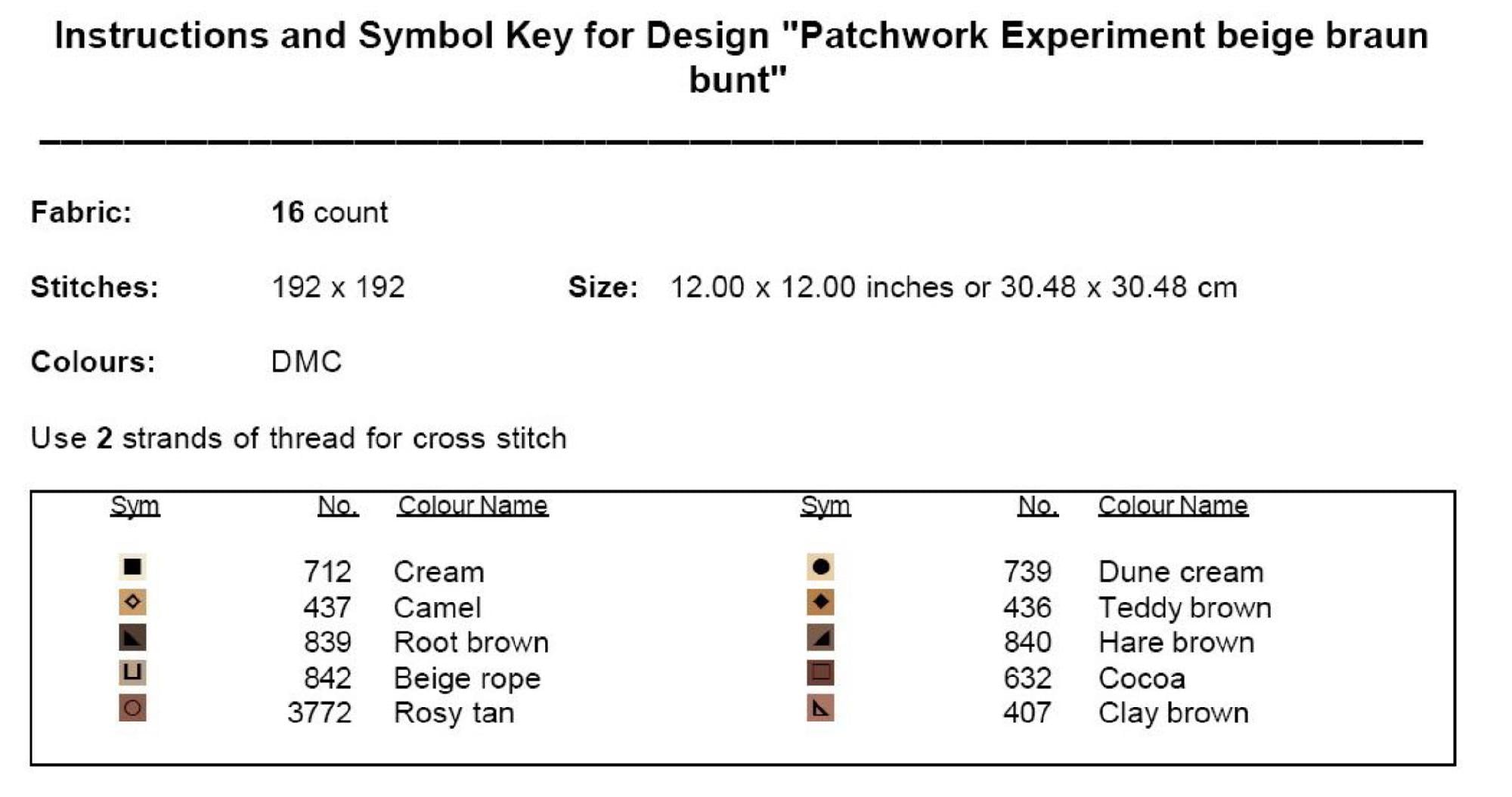 Cross stitch pattern Patchwork Experiment brown beige, image size approx. 30 x 30 cm, cross stitch embroidery pattern PDF file instant download