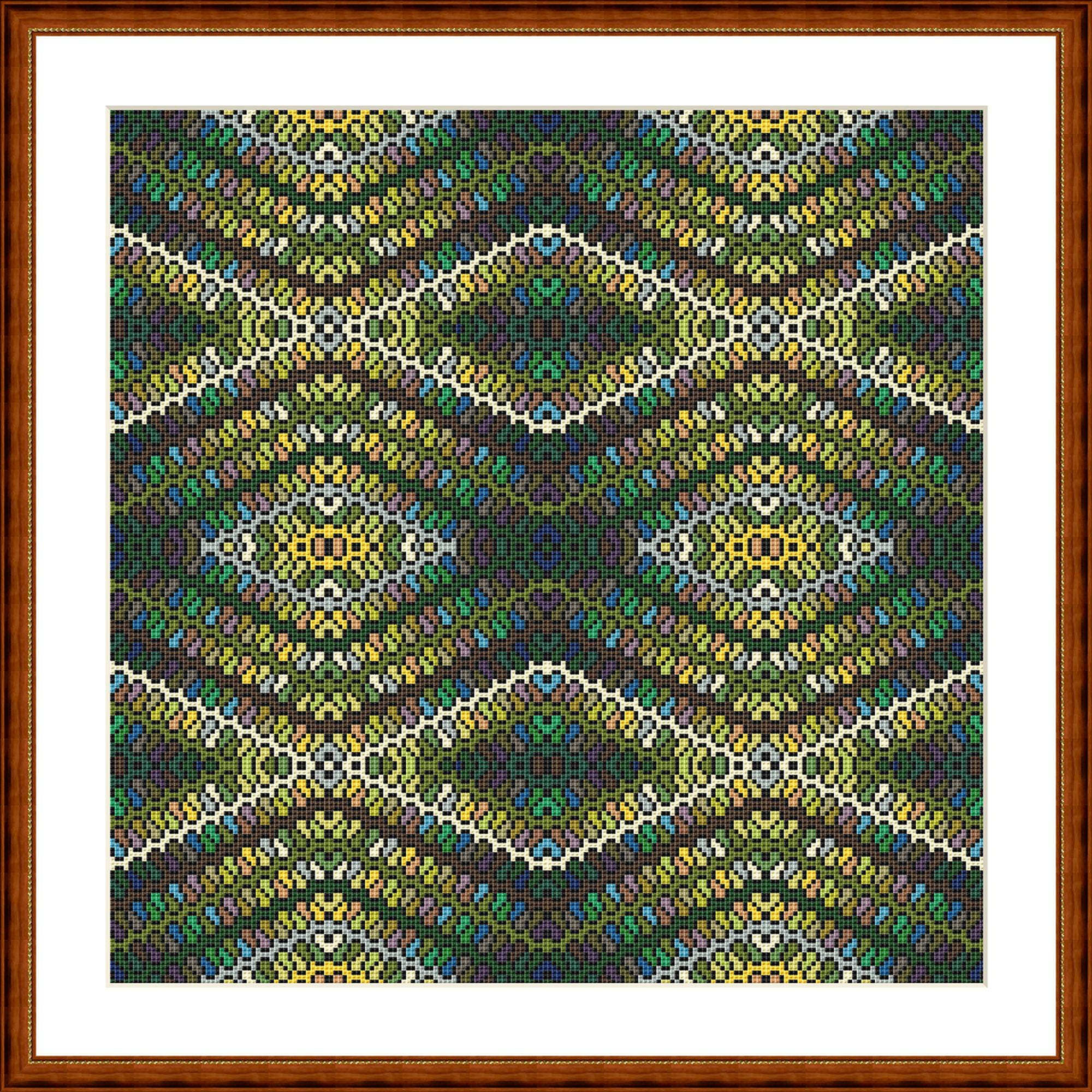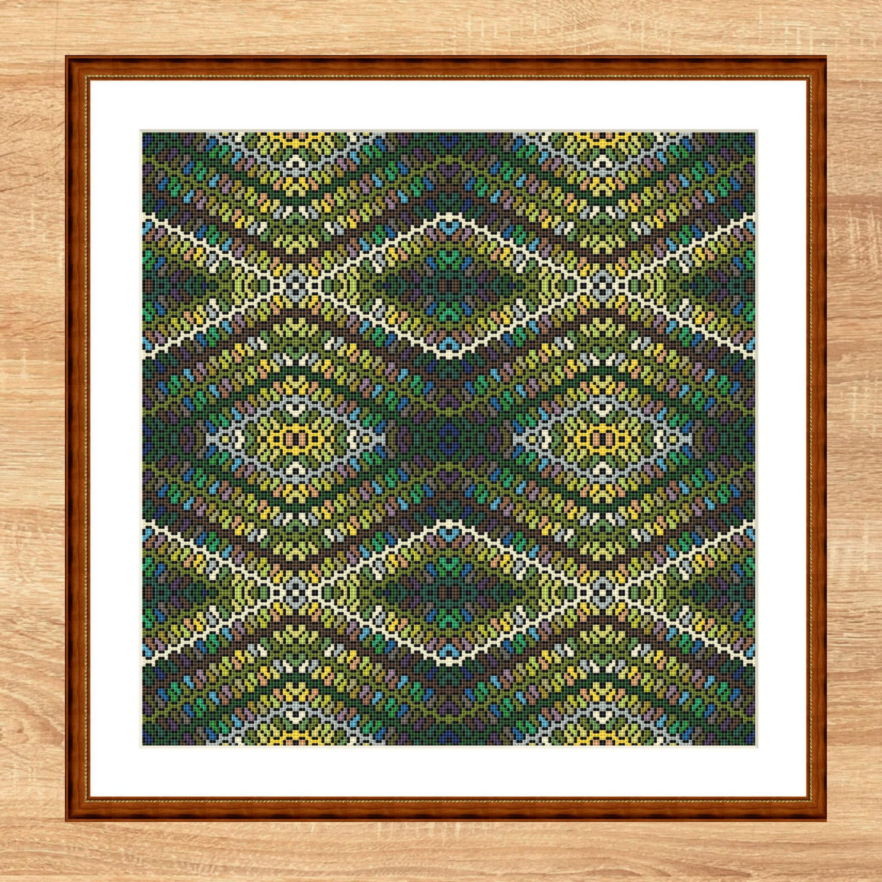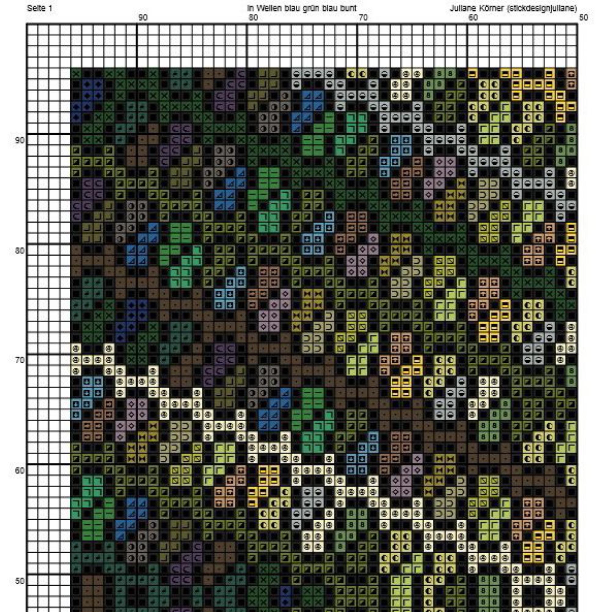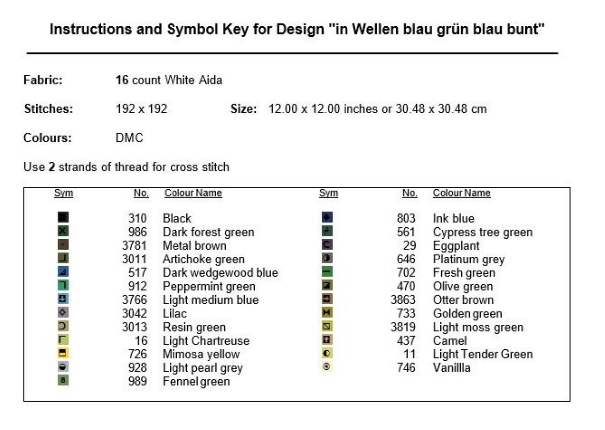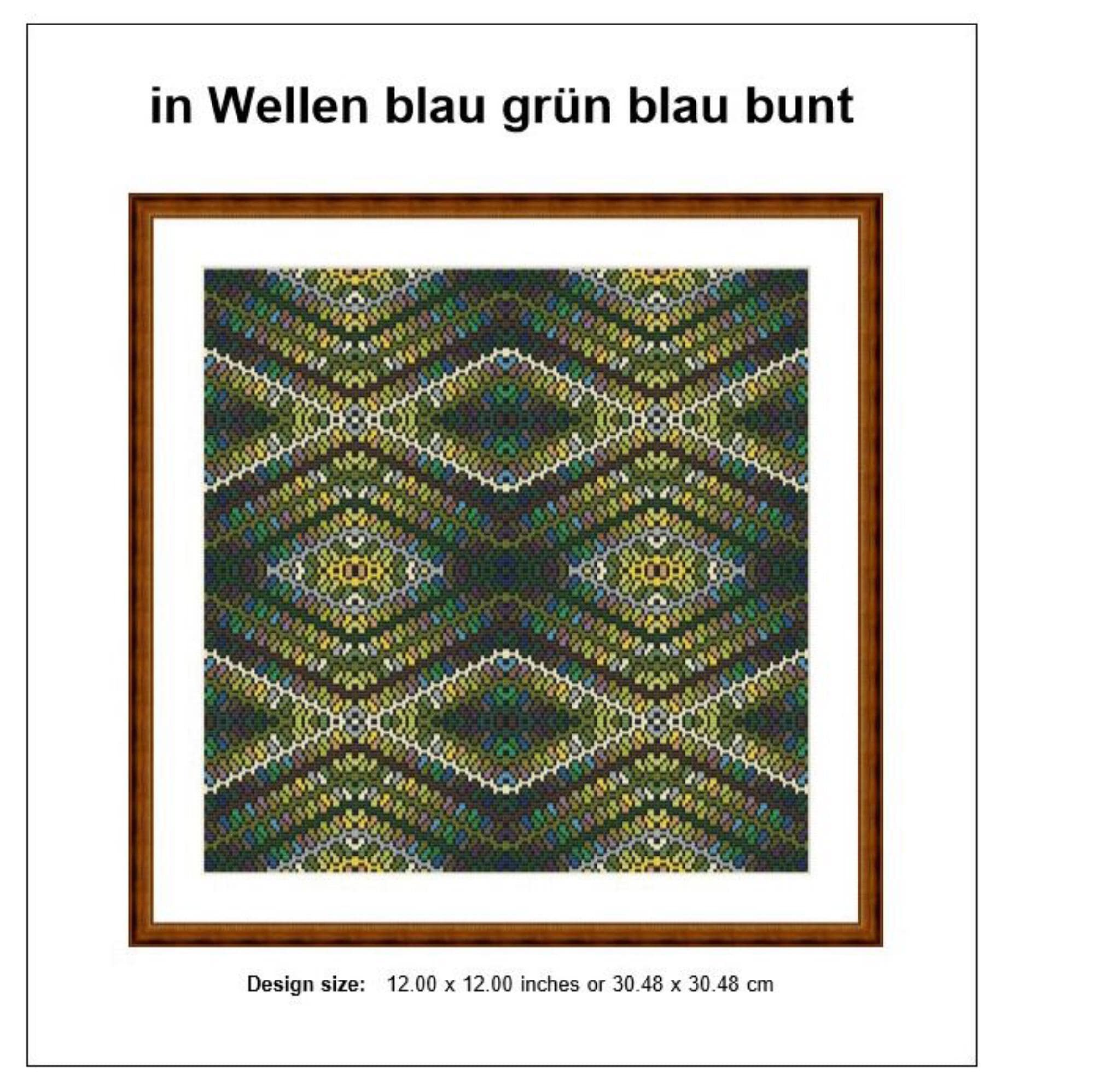 Cross stitch pattern in waves green blue, geometric pattern, image size approx. 30 x 30 cm, cross stitch embroidery pattern PDF file instant download