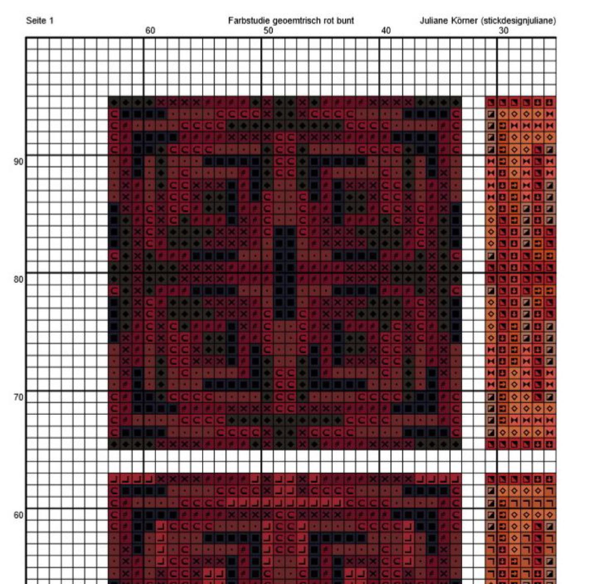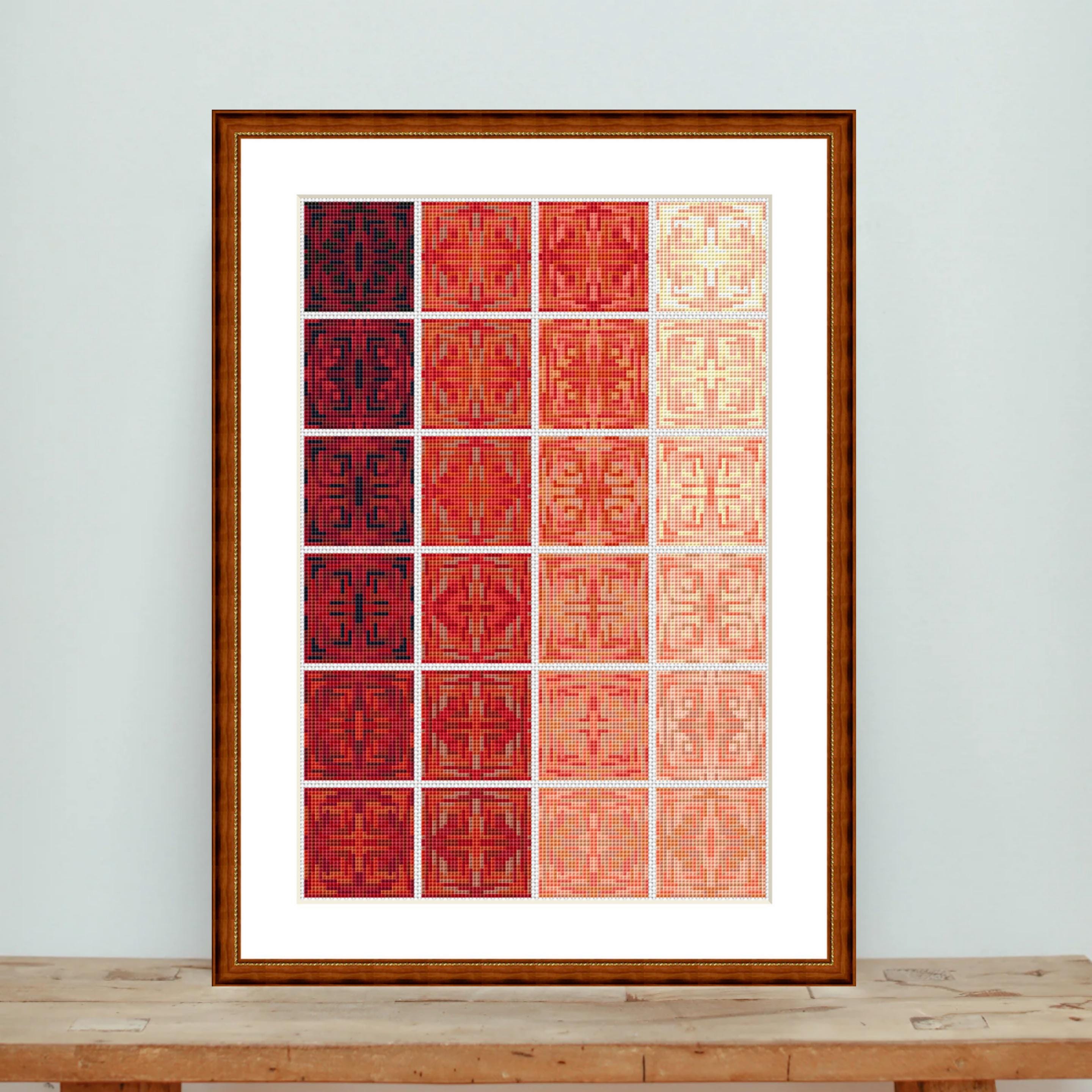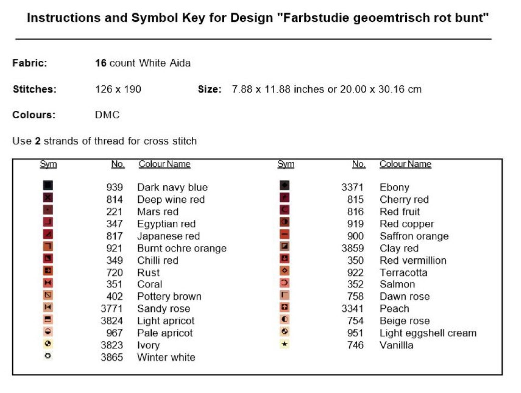 Cross stitch pattern color study geometric red, image size approx. 20 x 30 cm, cross stitch embroidery pattern PDF file instant download