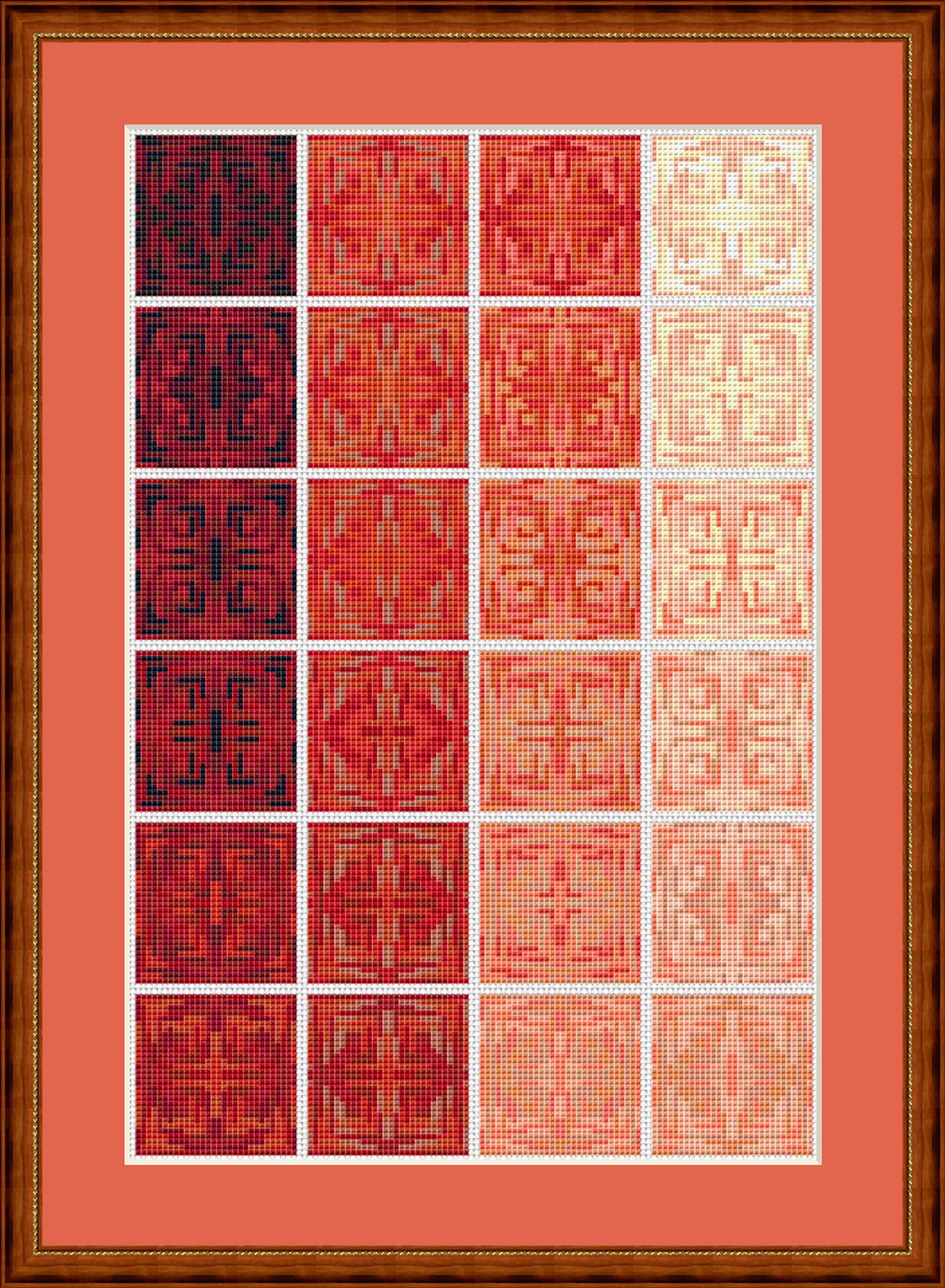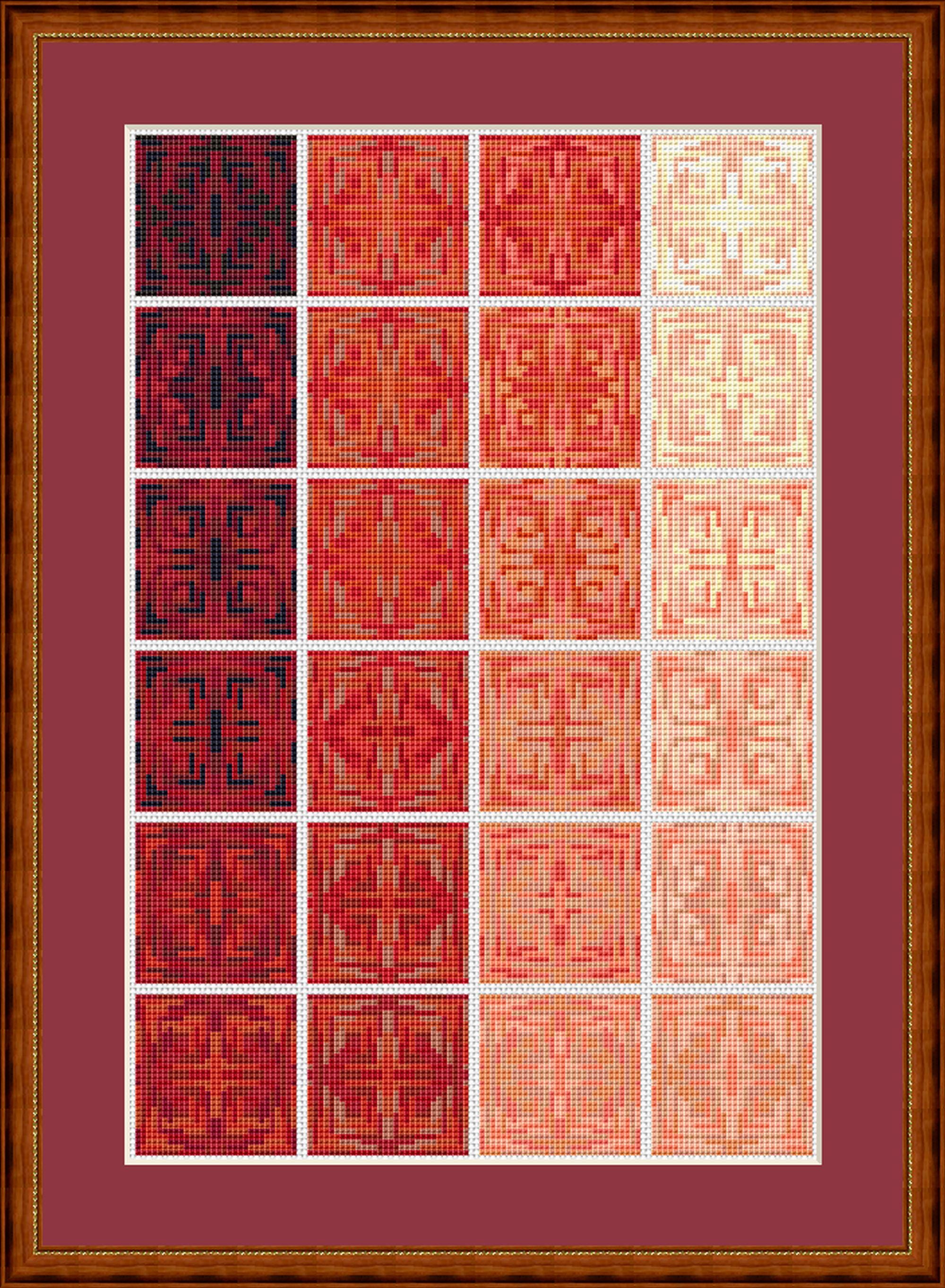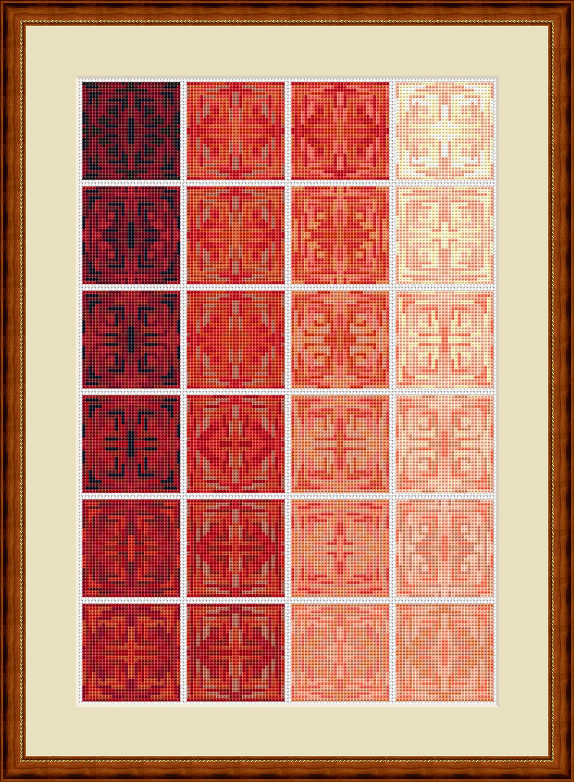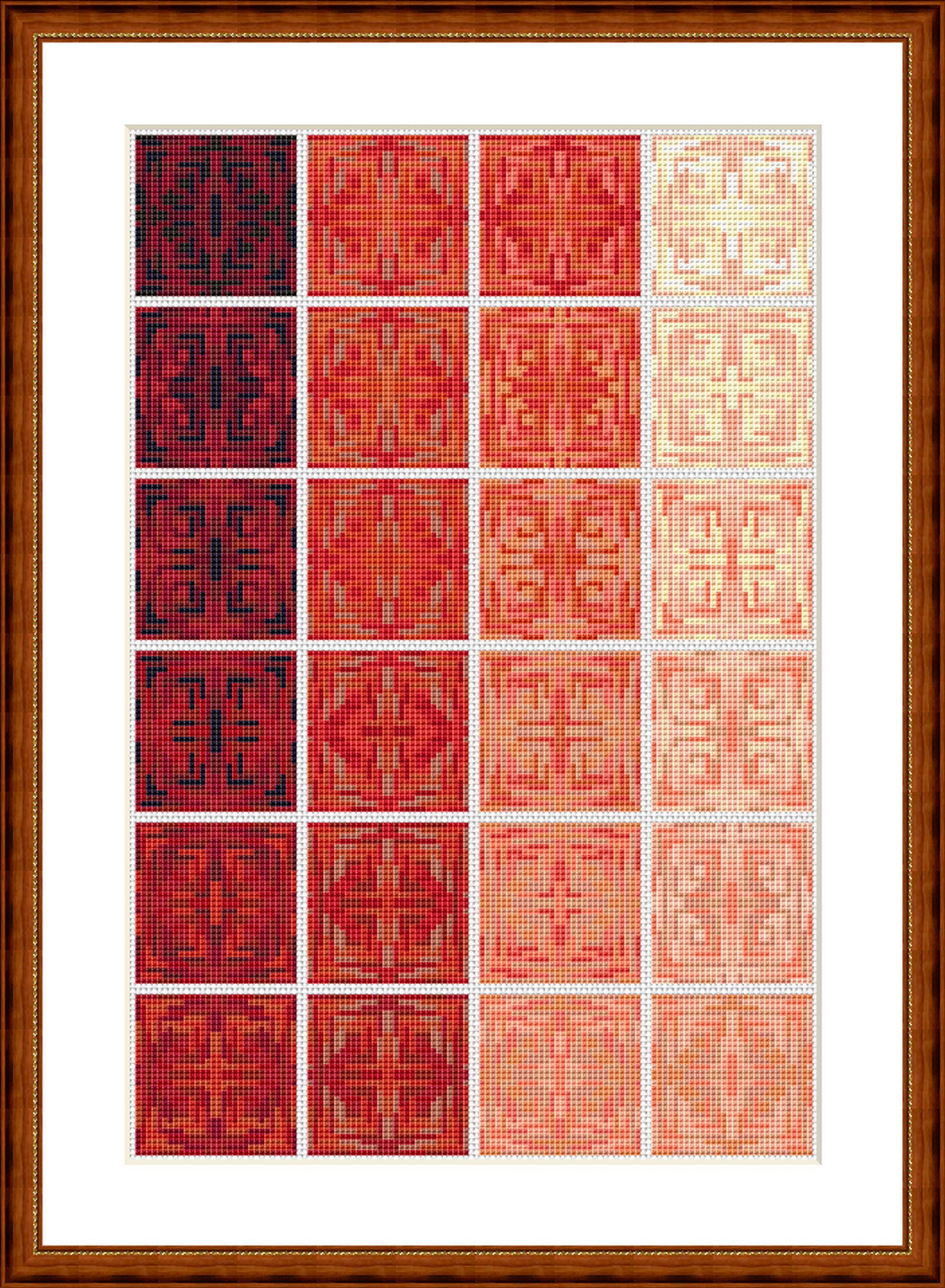 Cross stitch pattern color study geometric red, image size approx. 20 x 30 cm, cross stitch embroidery pattern PDF file instant download