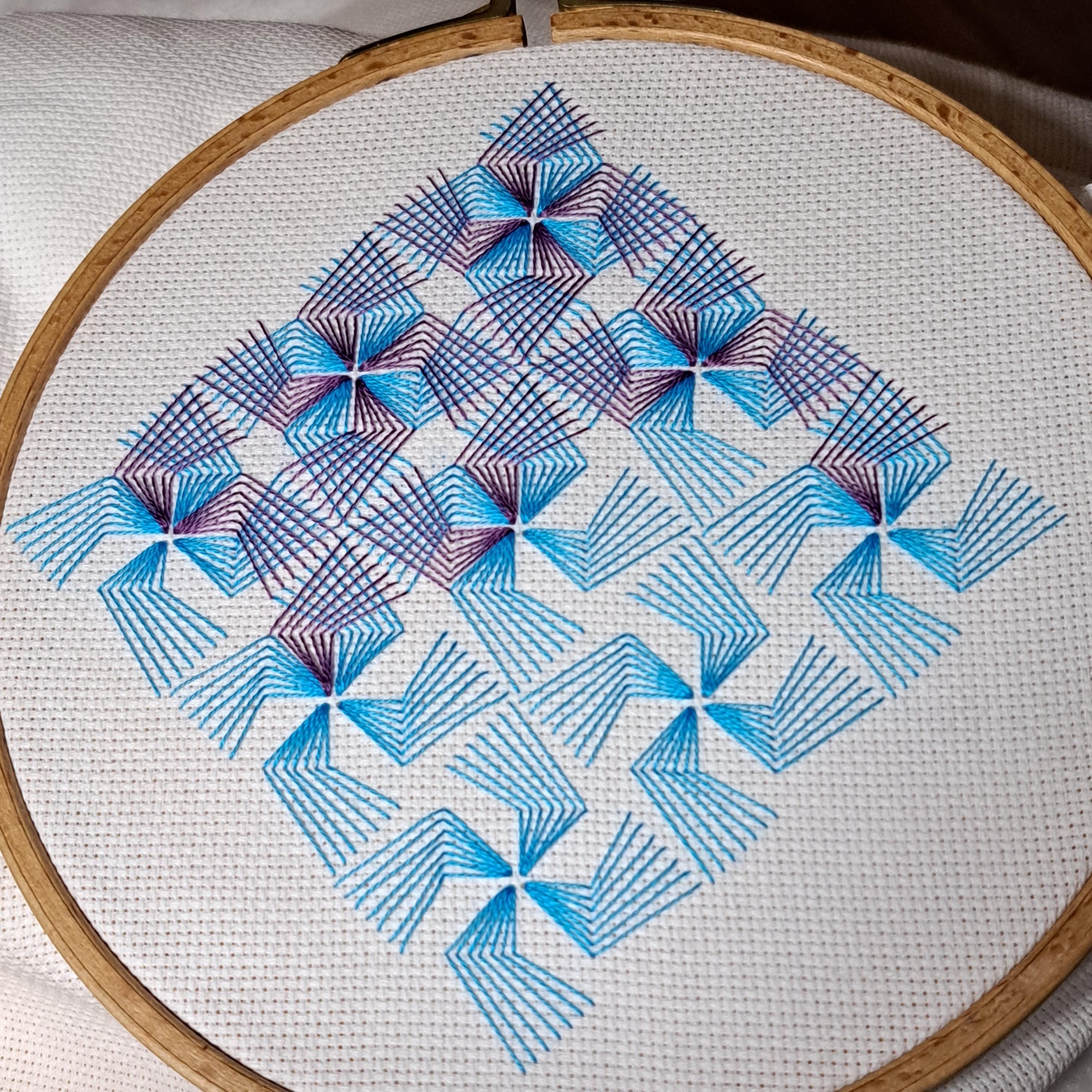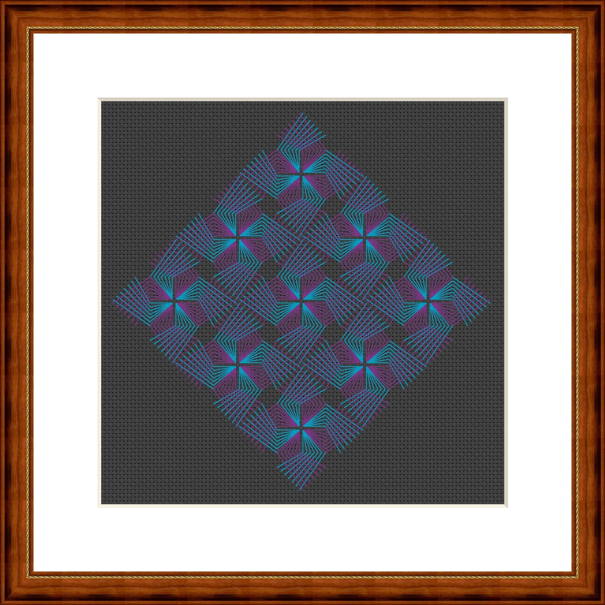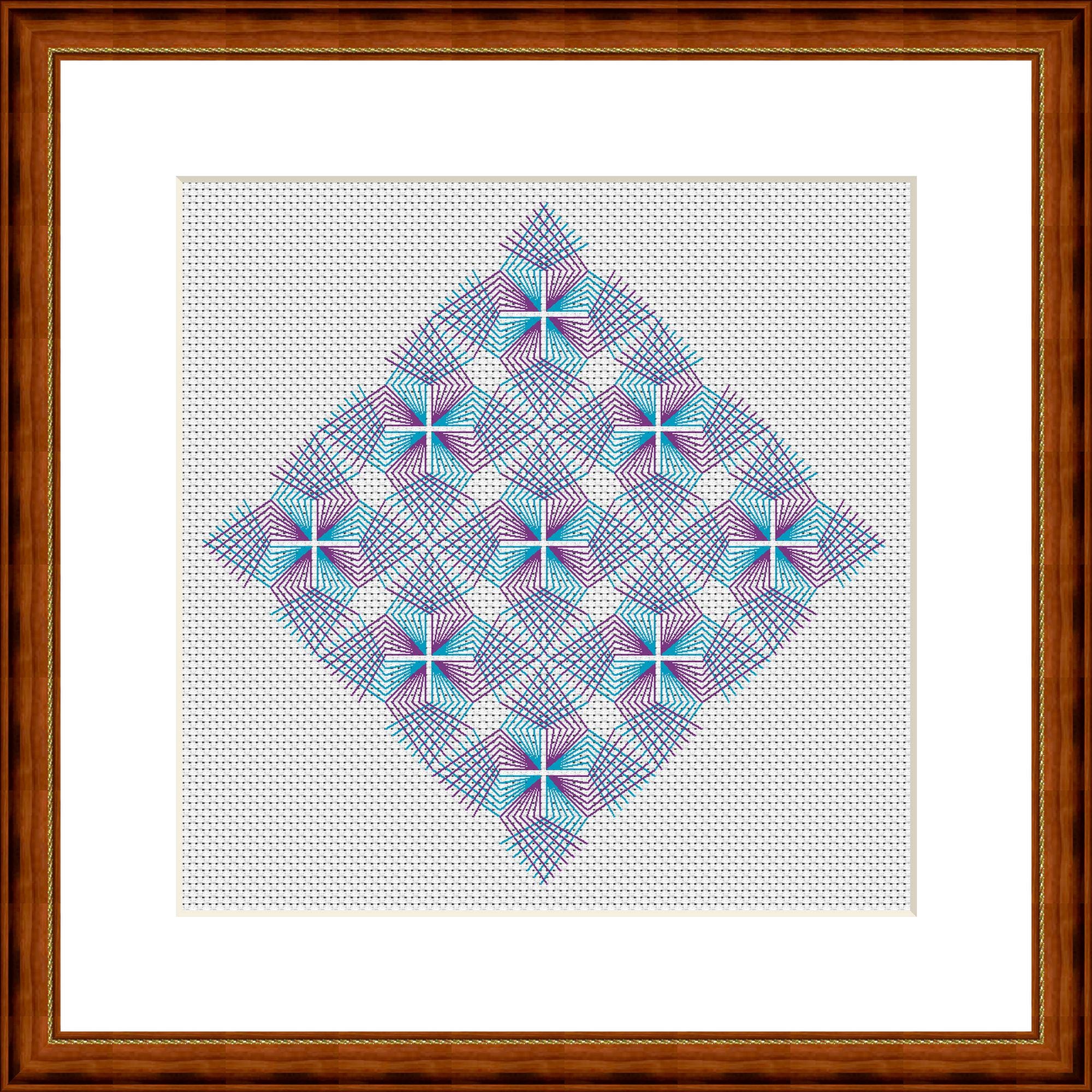Blackwork Combination Violet Turquoise, image size approx. 15 x 15 cm, geometric embroidery pattern, embroidery template PDF file