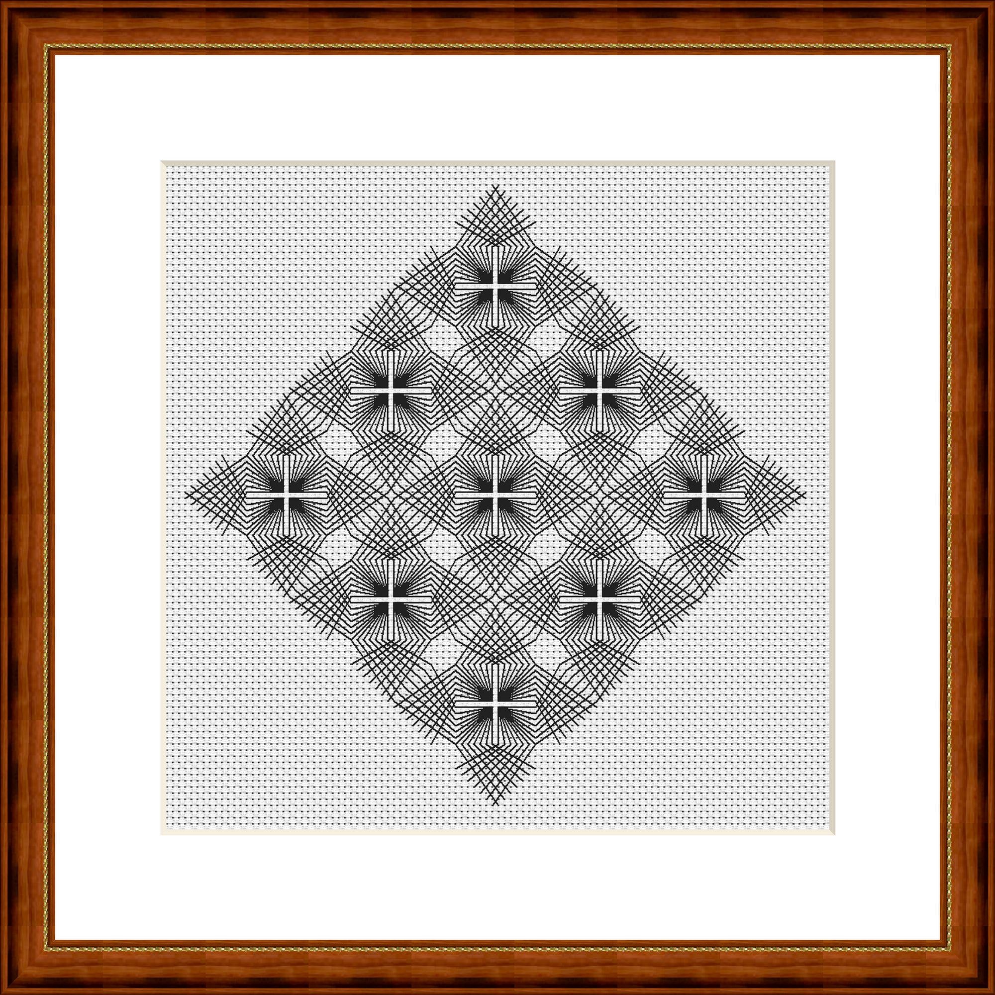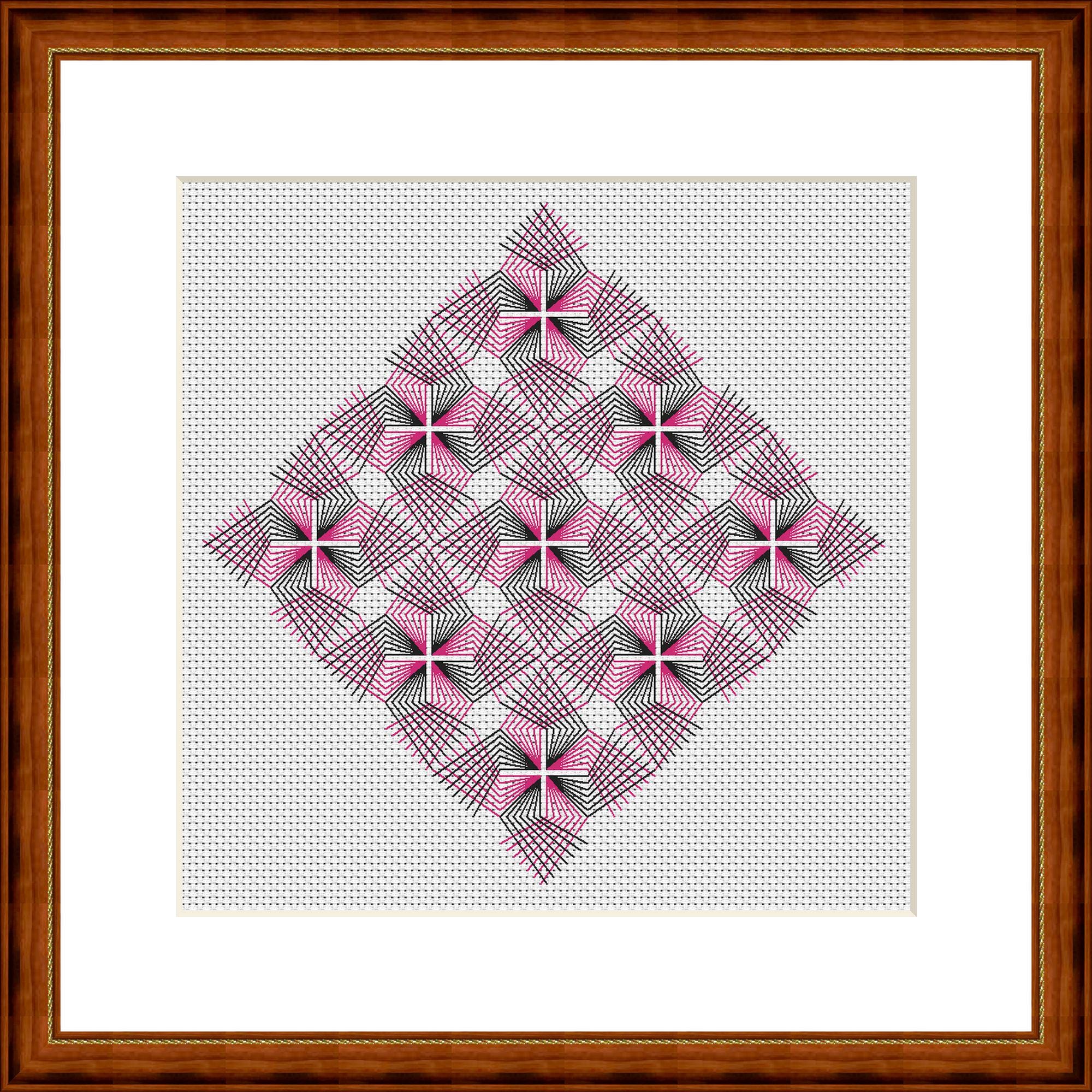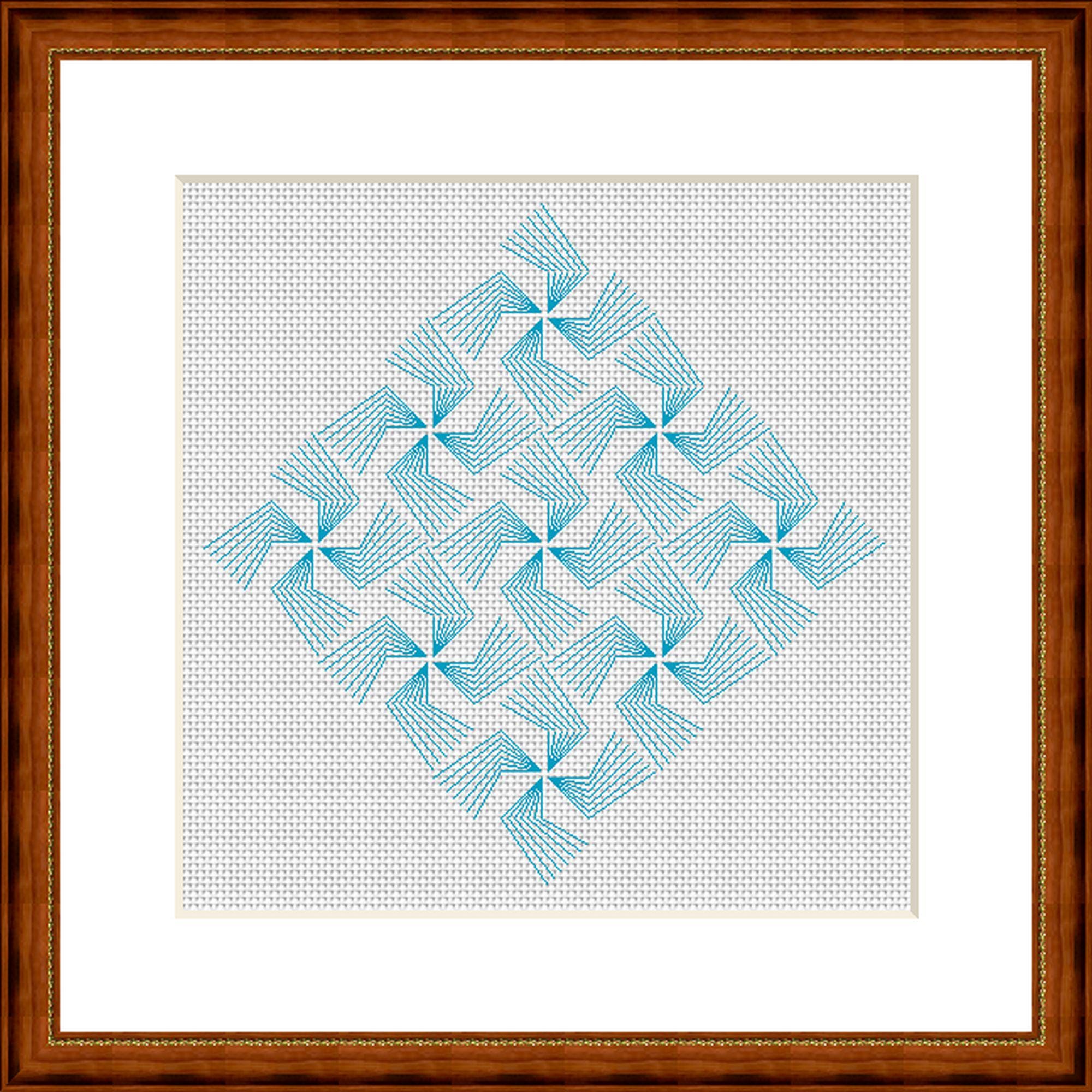 Blackwork Combination Violet Turquoise, image size approx. 15 x 15 cm, geometric embroidery pattern, embroidery template PDF file