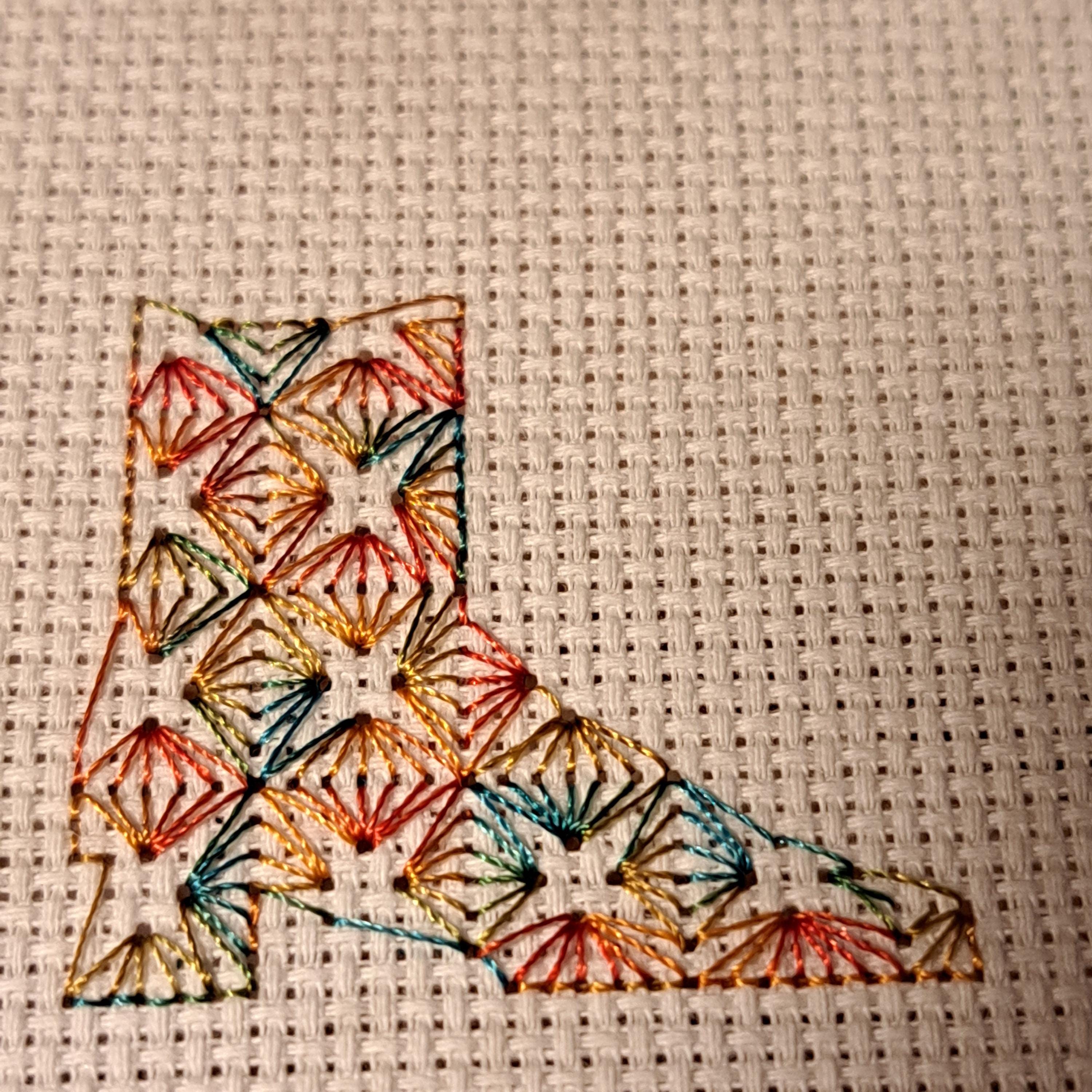 18 ct Aida paper produces an image size of approximately 11.85 cm x 11.01 cm (4.67 x 4.33 inches)