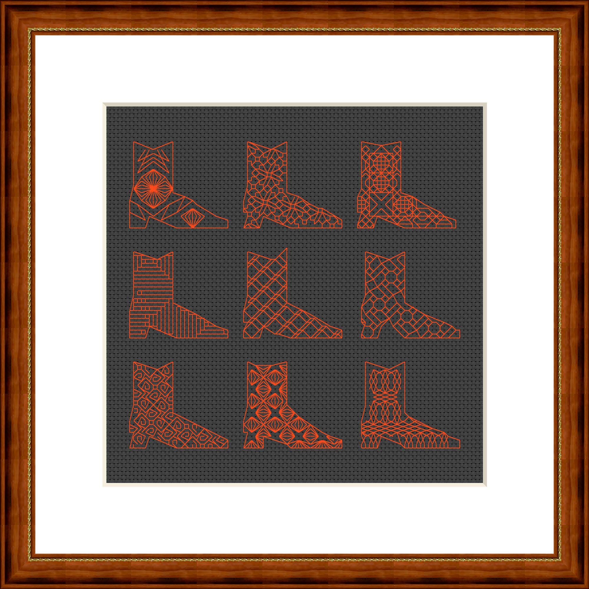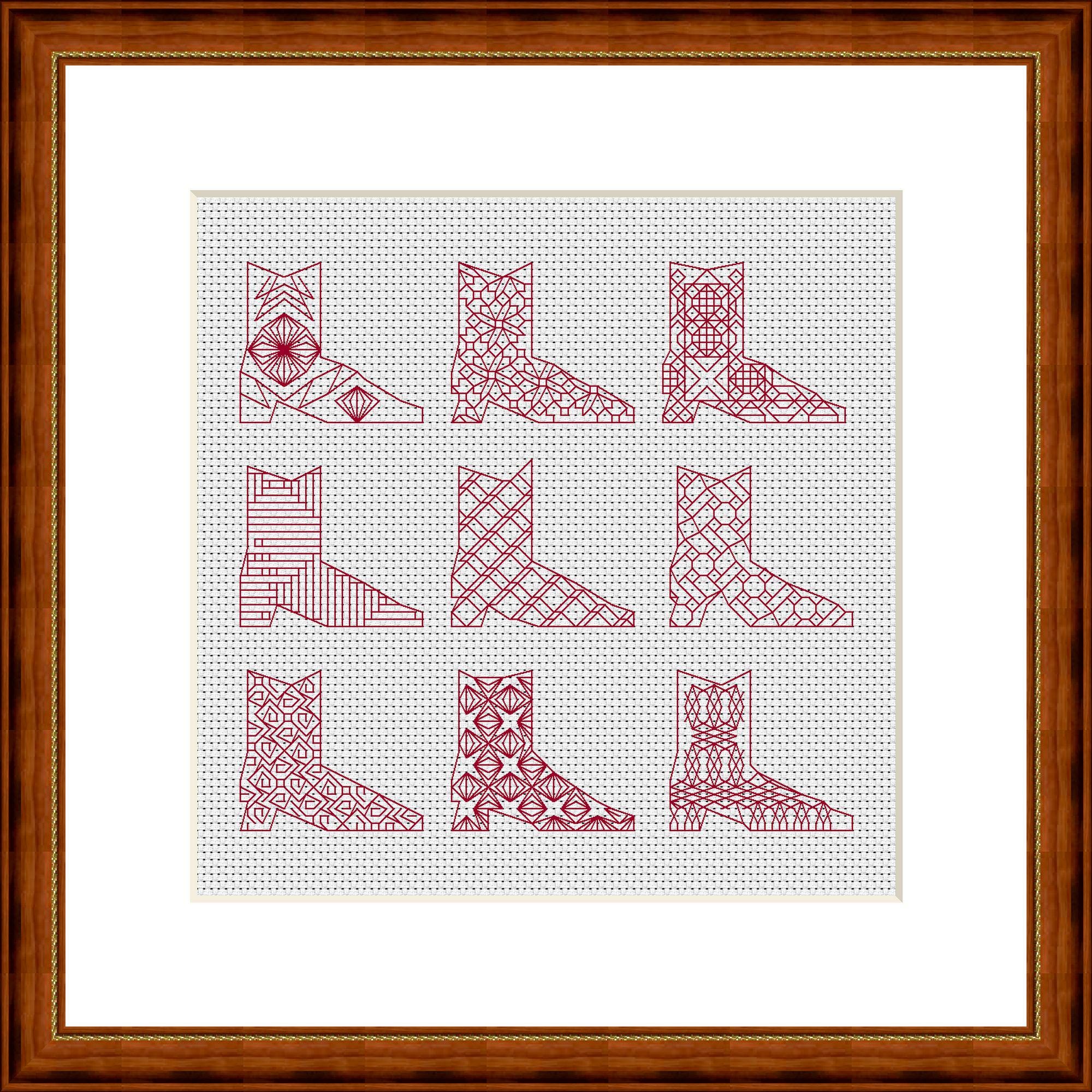 Blackwork boot pattern mix, image size approx. 12 x 11 cm, blackwork pattern embroidery template PDF file instant download