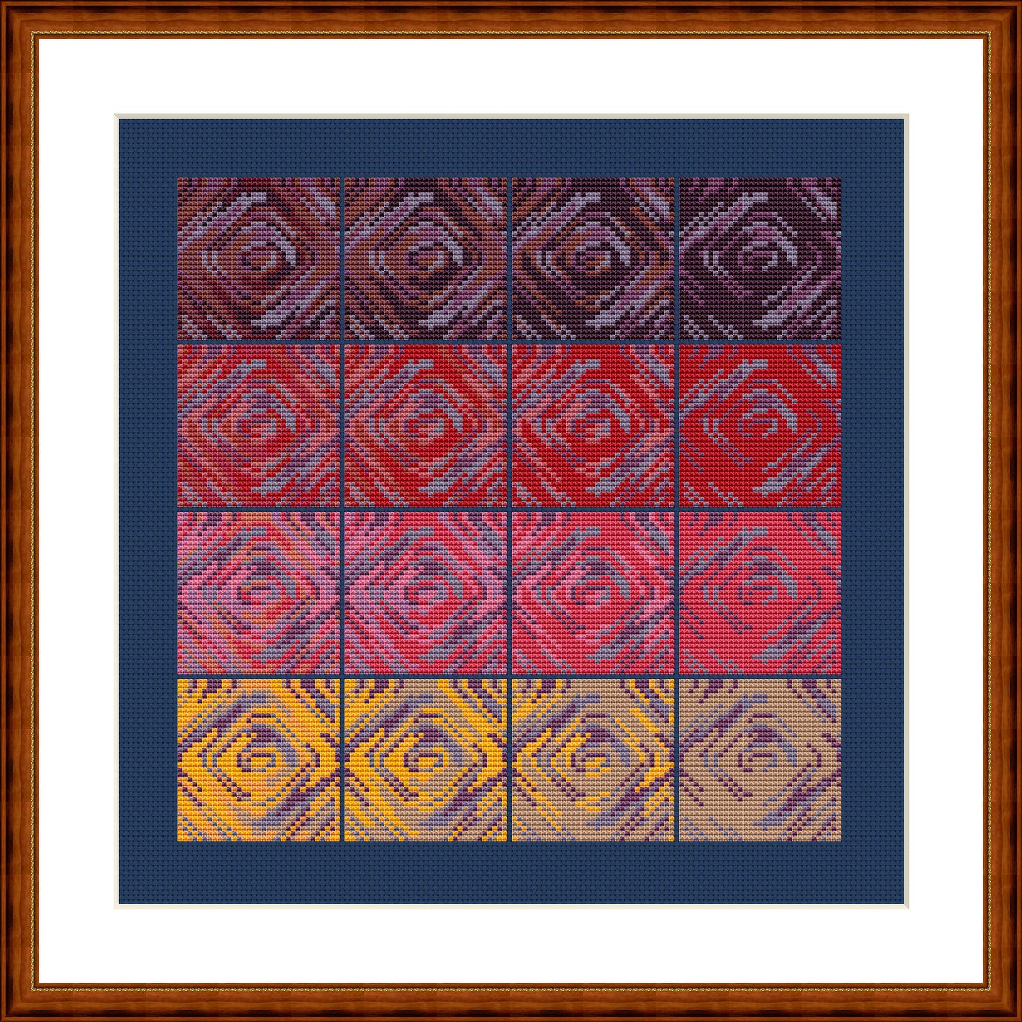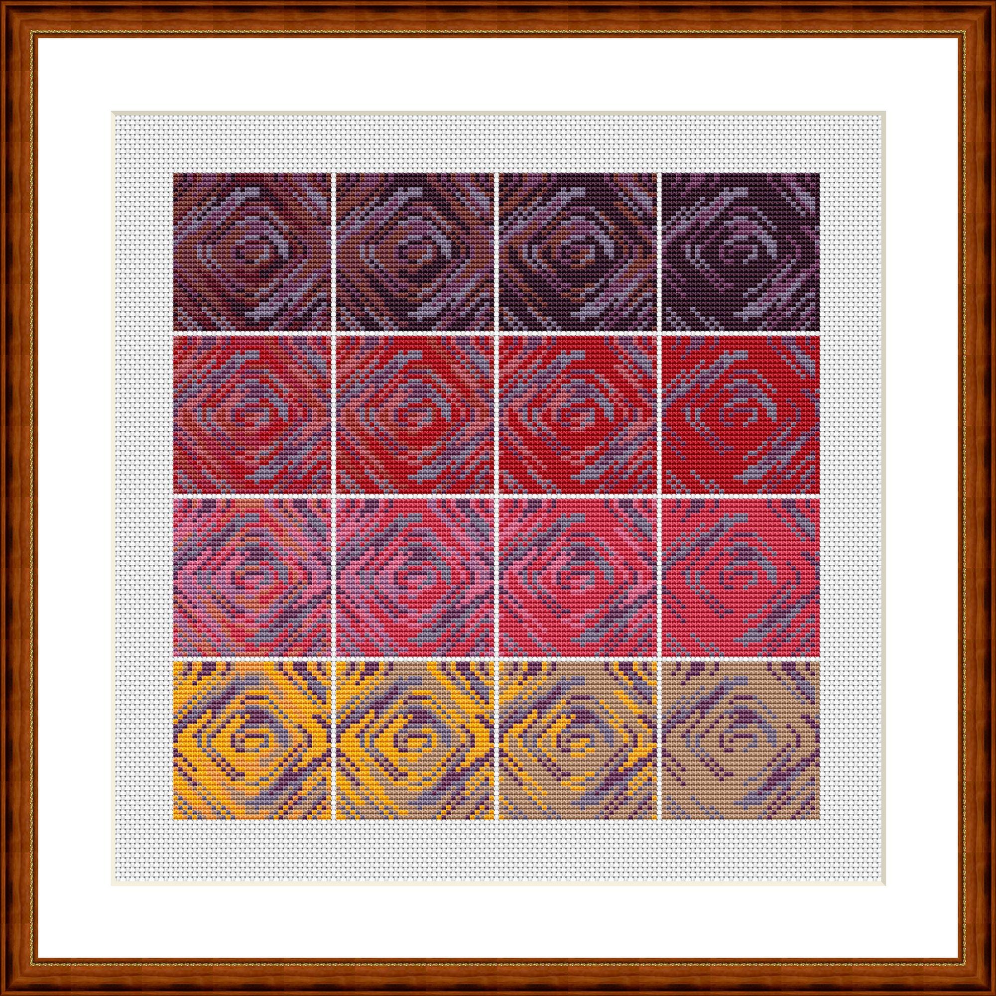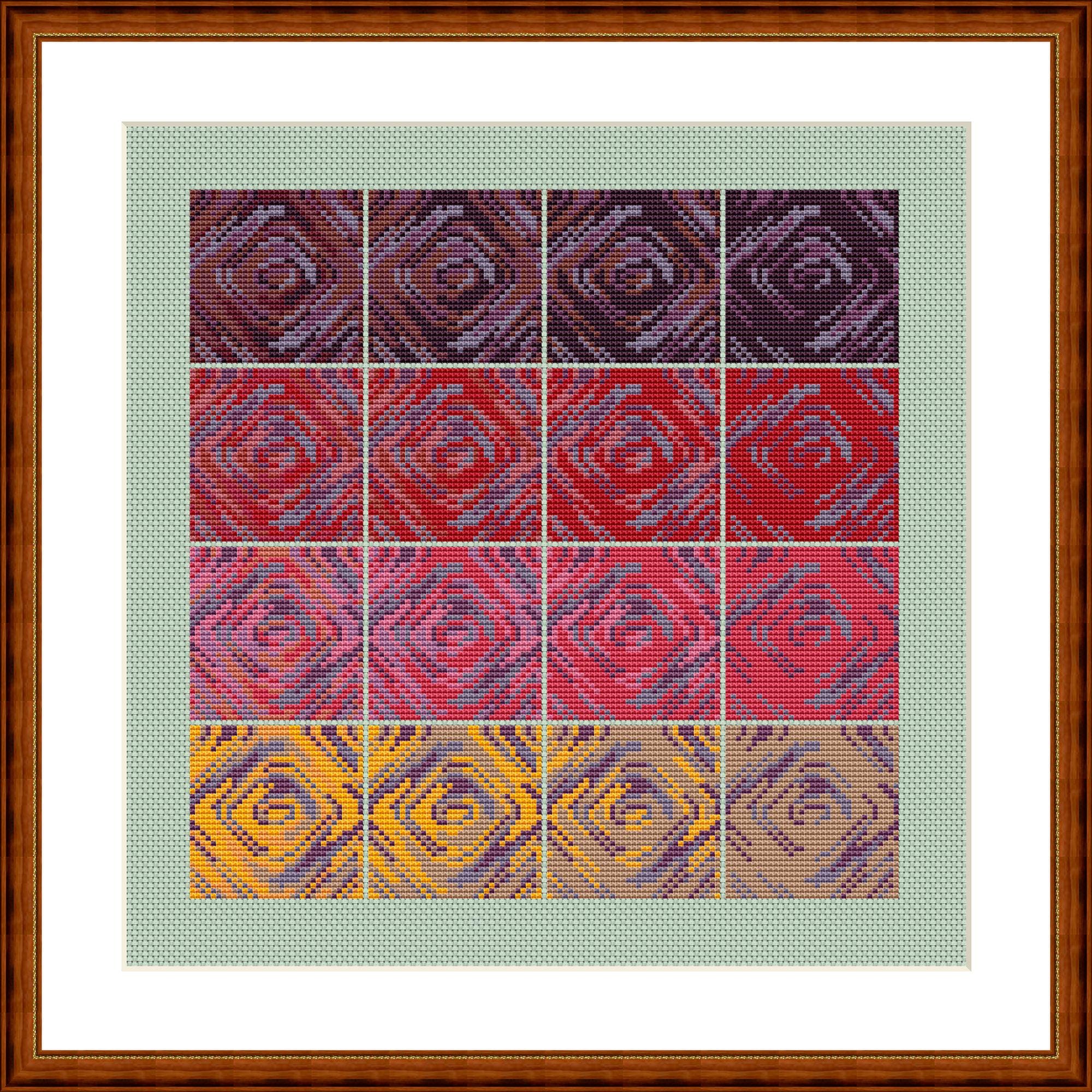 Cross-stitch color study: swirl of dark and light patterns, image size approx. 22 x 22 cm, cross-stitch pattern PDF file, instant download