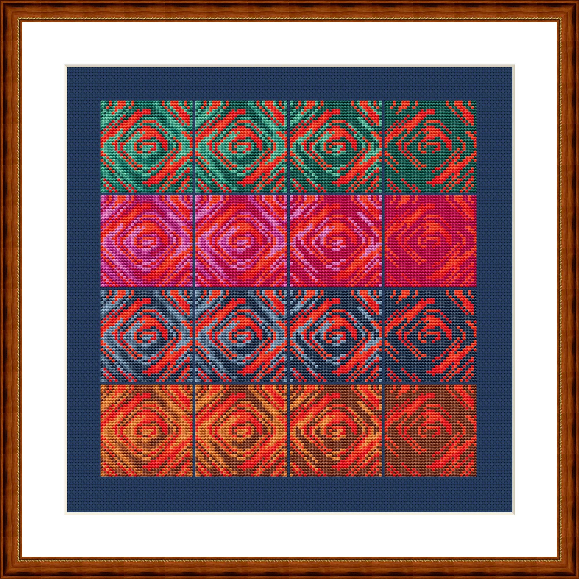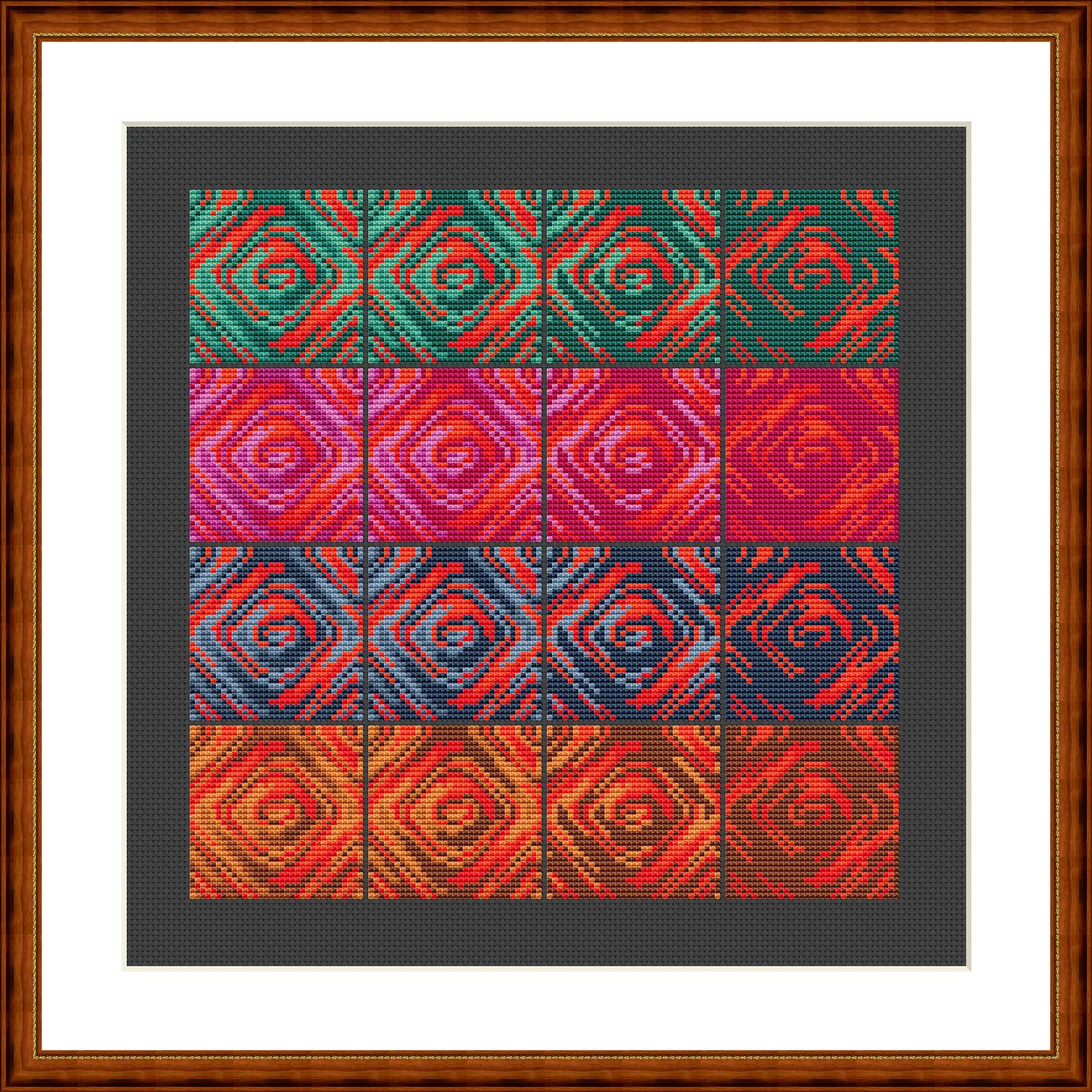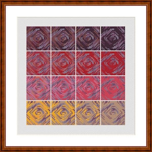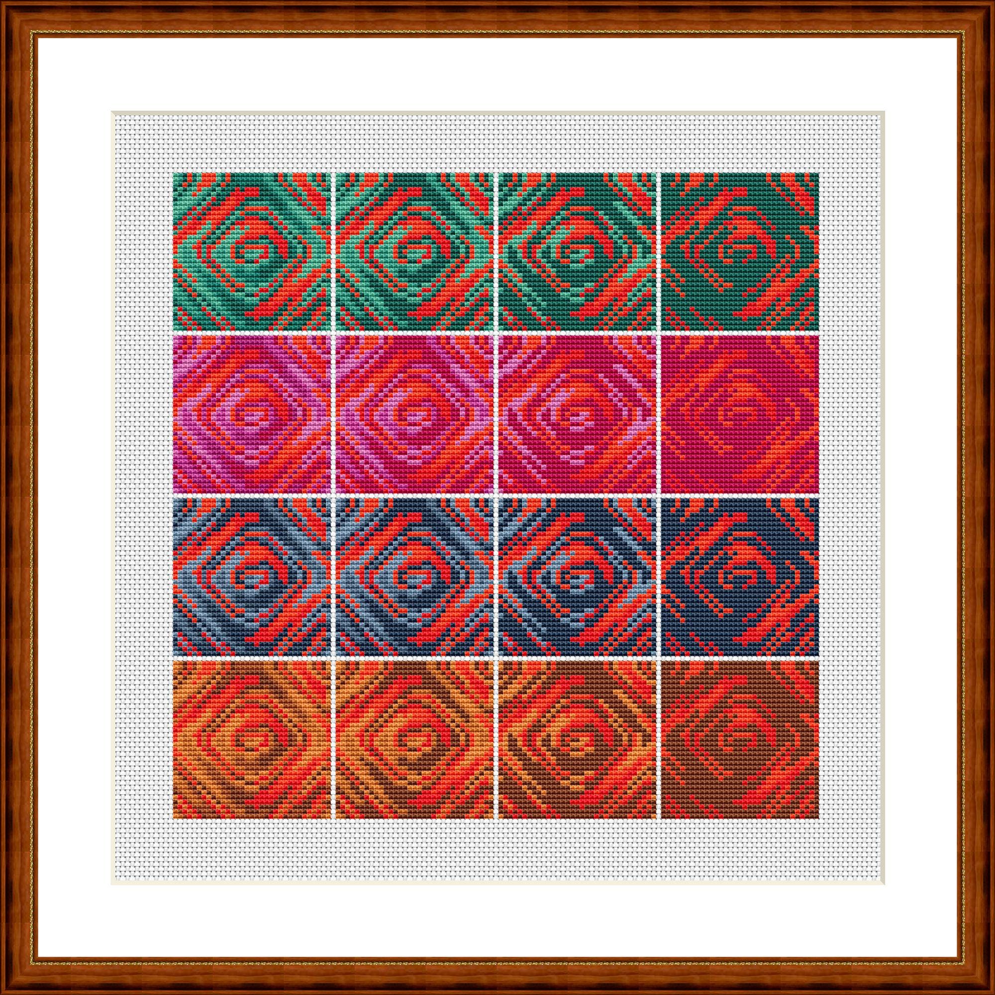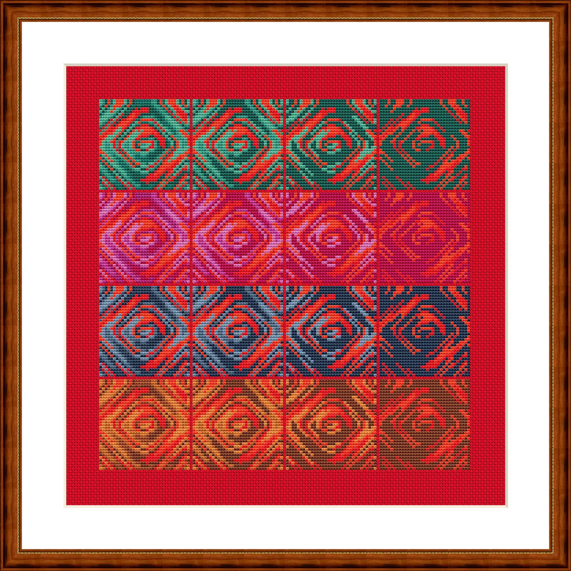 Cross stitch pattern, color study: swirl red, image size approx. 22 x 22 cm, cross stitch embroidery pattern PDF file, instant download