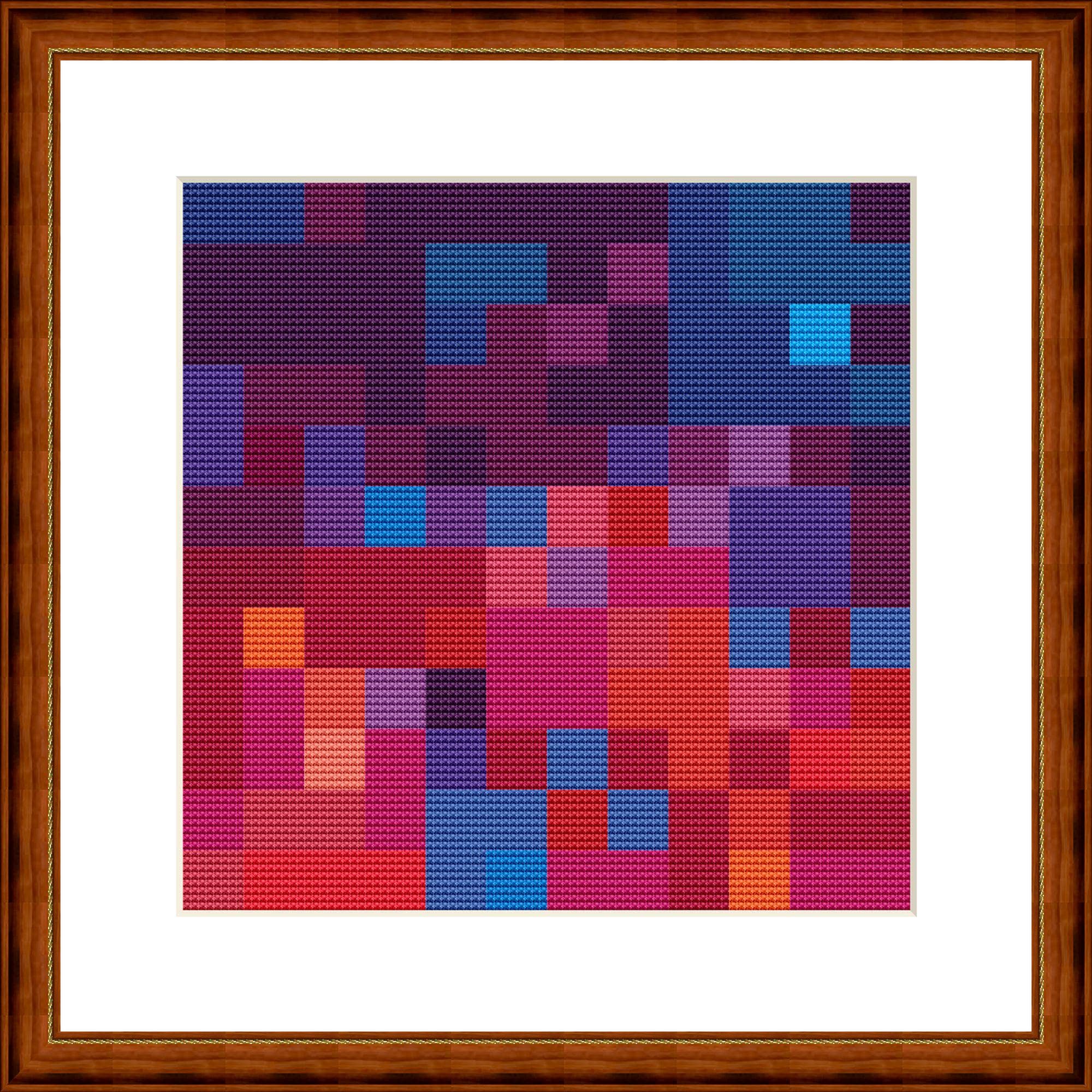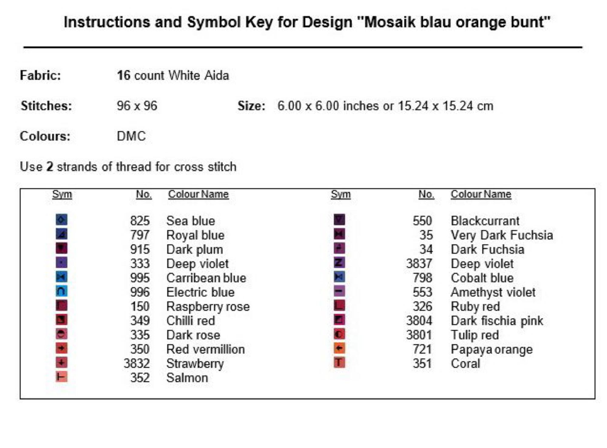 Cross stitch pattern mosaic blue orange, image size approx. 15 x 15 cm, cross stitch embroidery pattern PDF file instant download