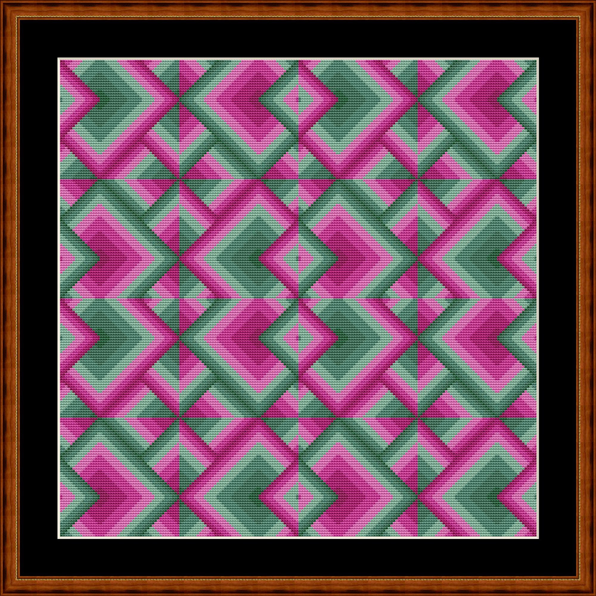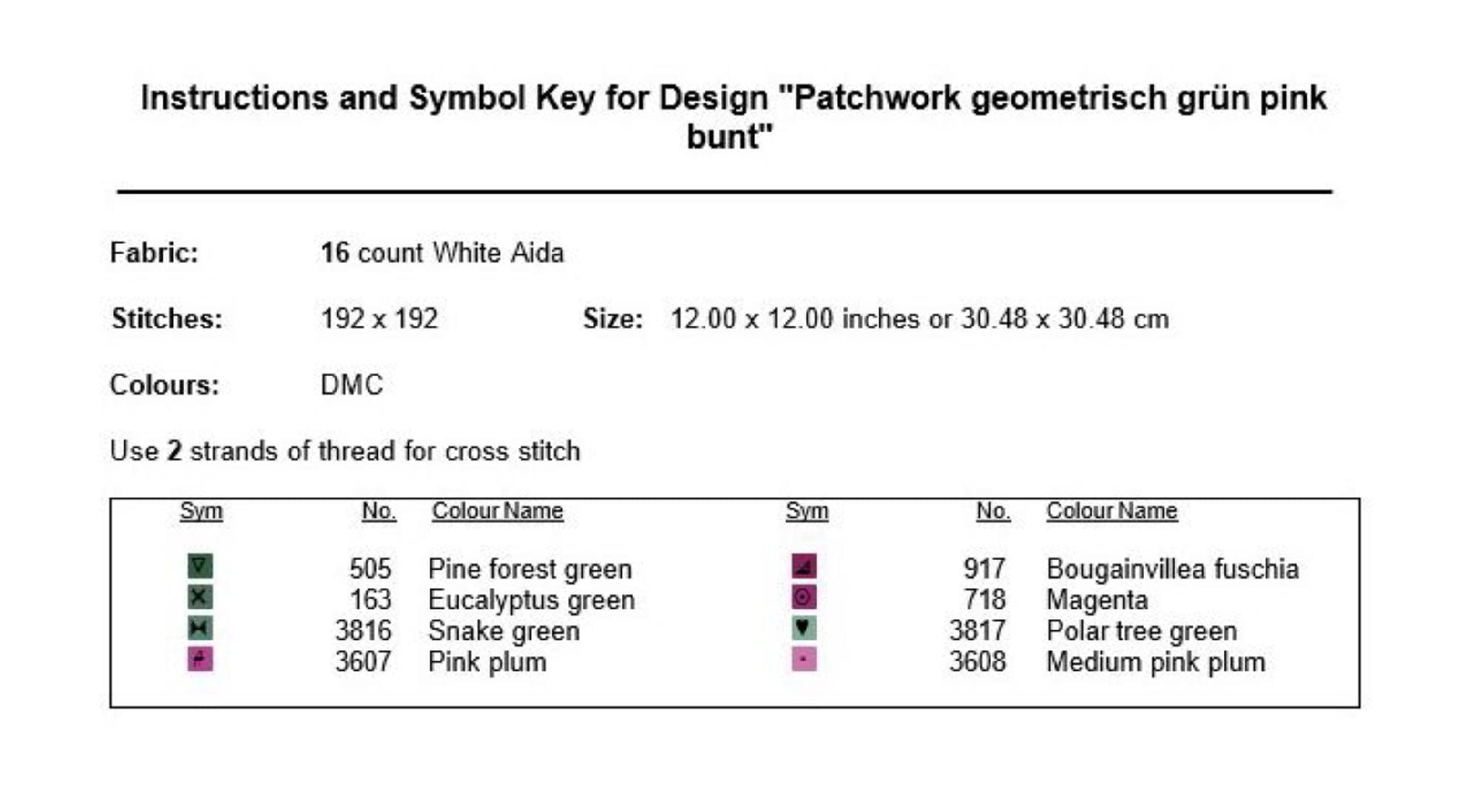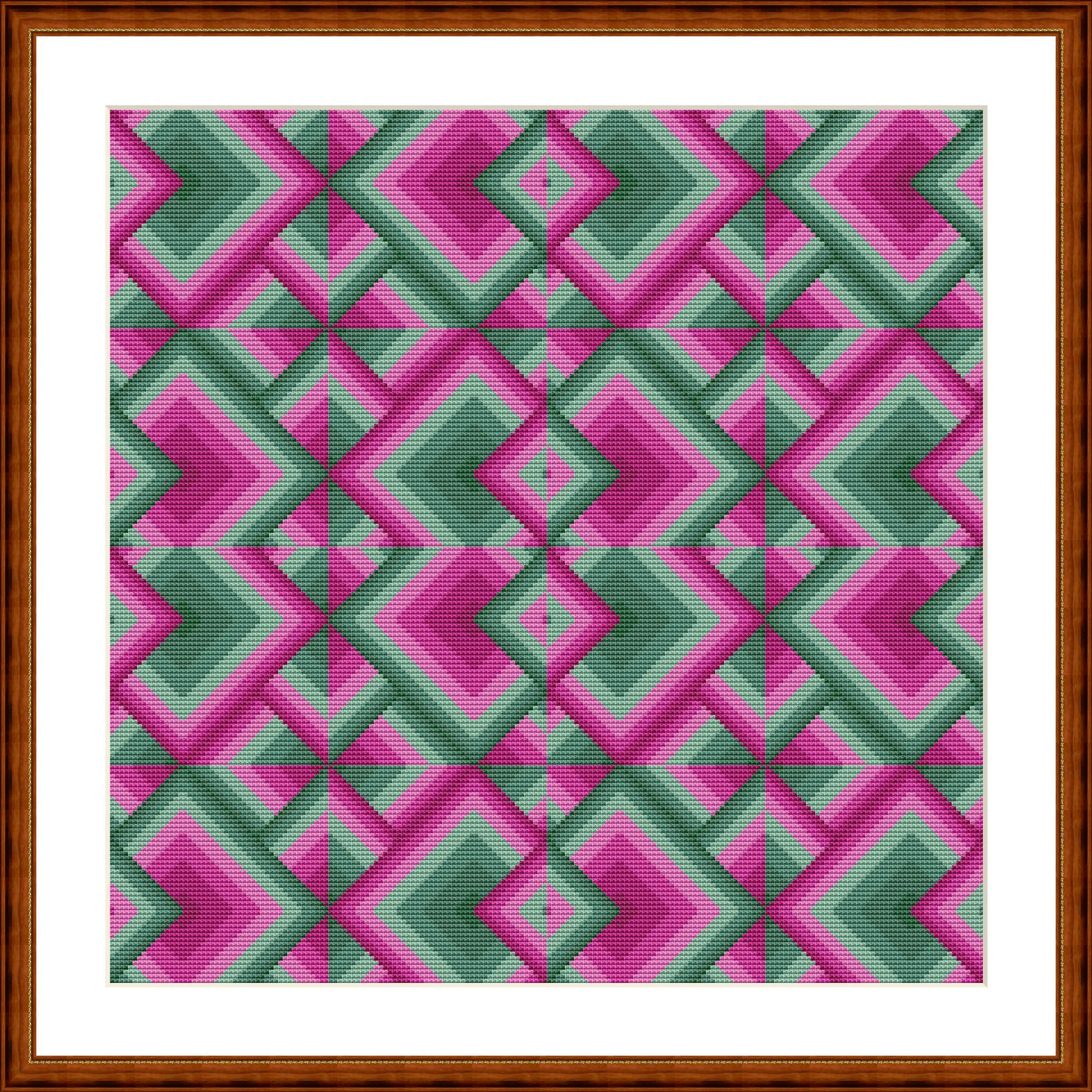 Cross stitch pattern patchwork geometric green pink, image size approx. 30 x 30 cm, cross stitch embroidery pattern PDF file instant download