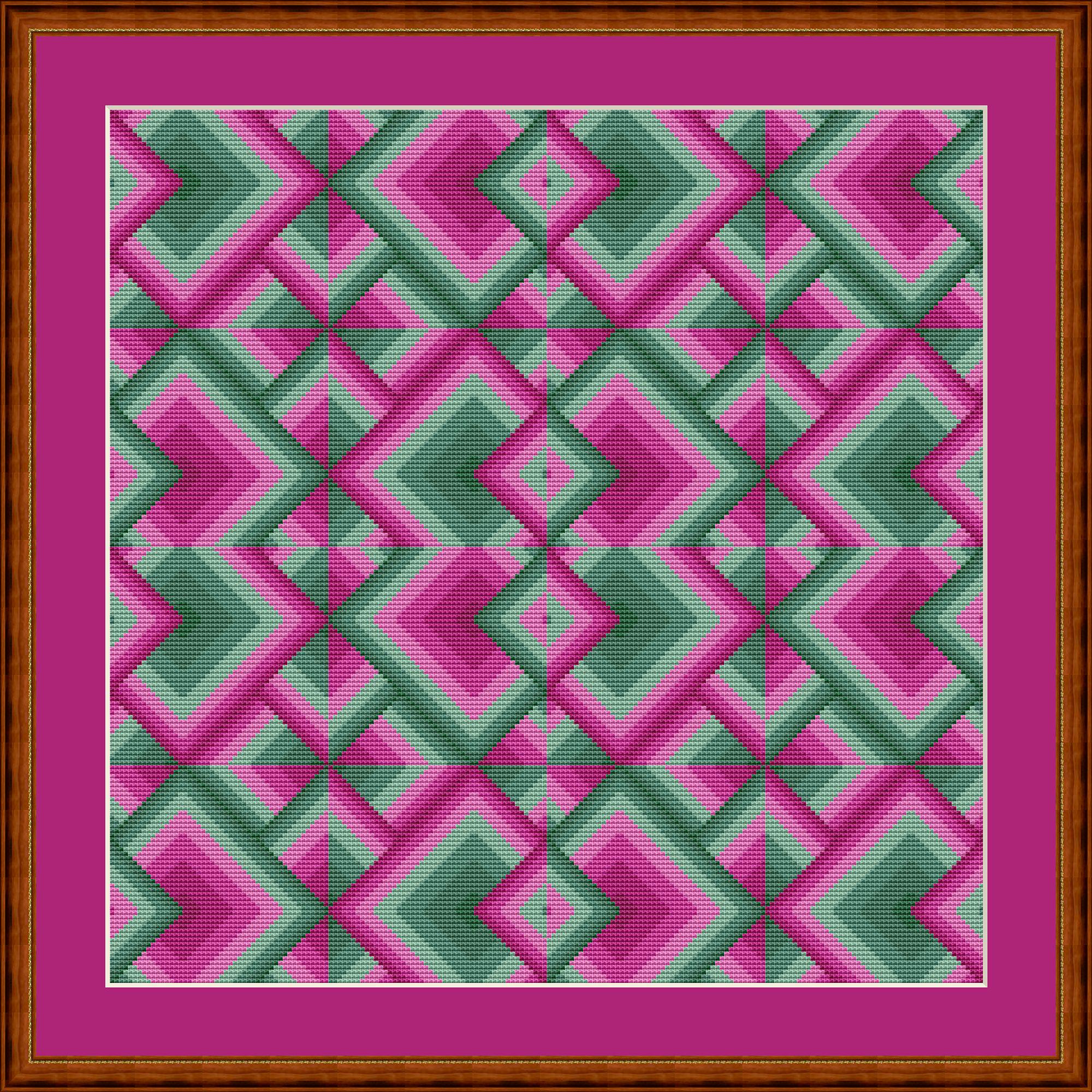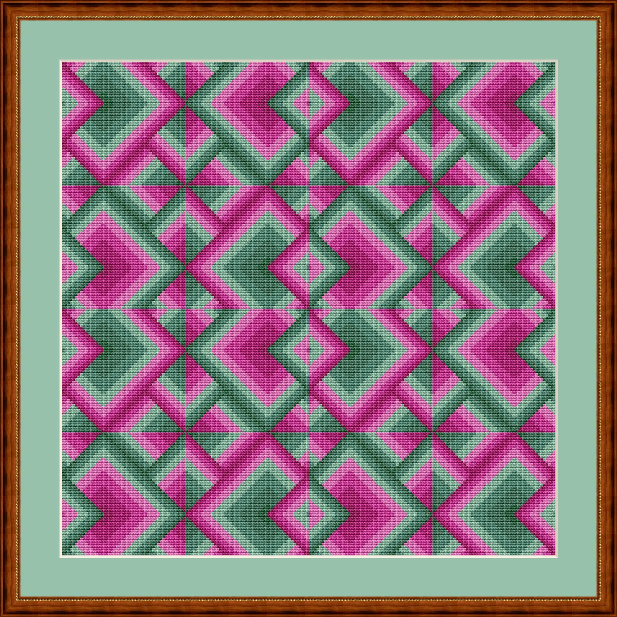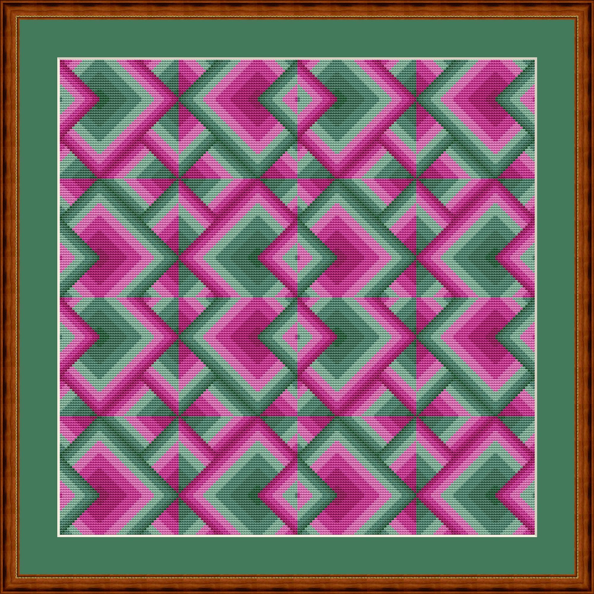 Cross stitch pattern patchwork geometric green pink, image size approx. 30 x 30 cm, cross stitch embroidery pattern PDF file instant download
