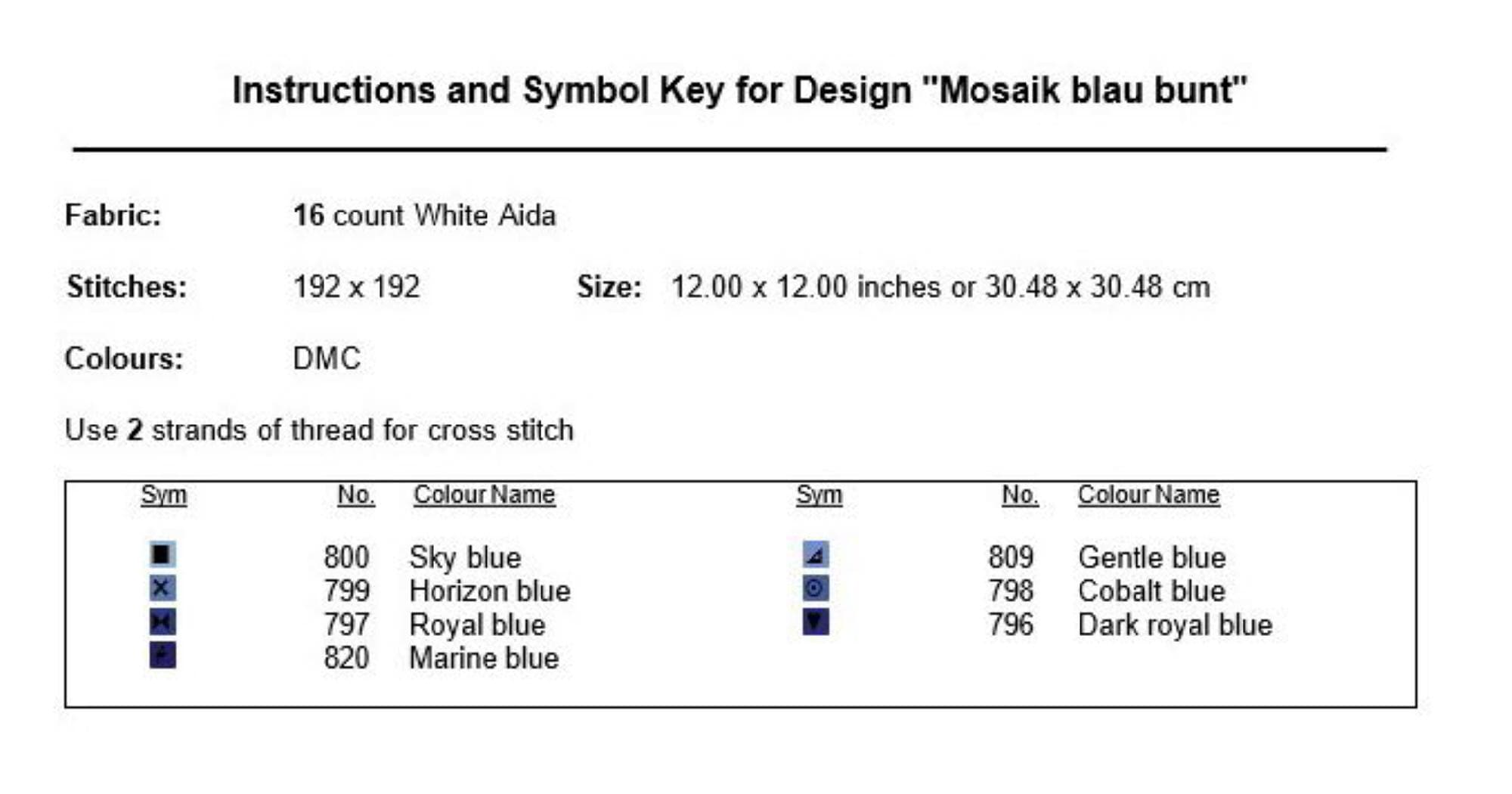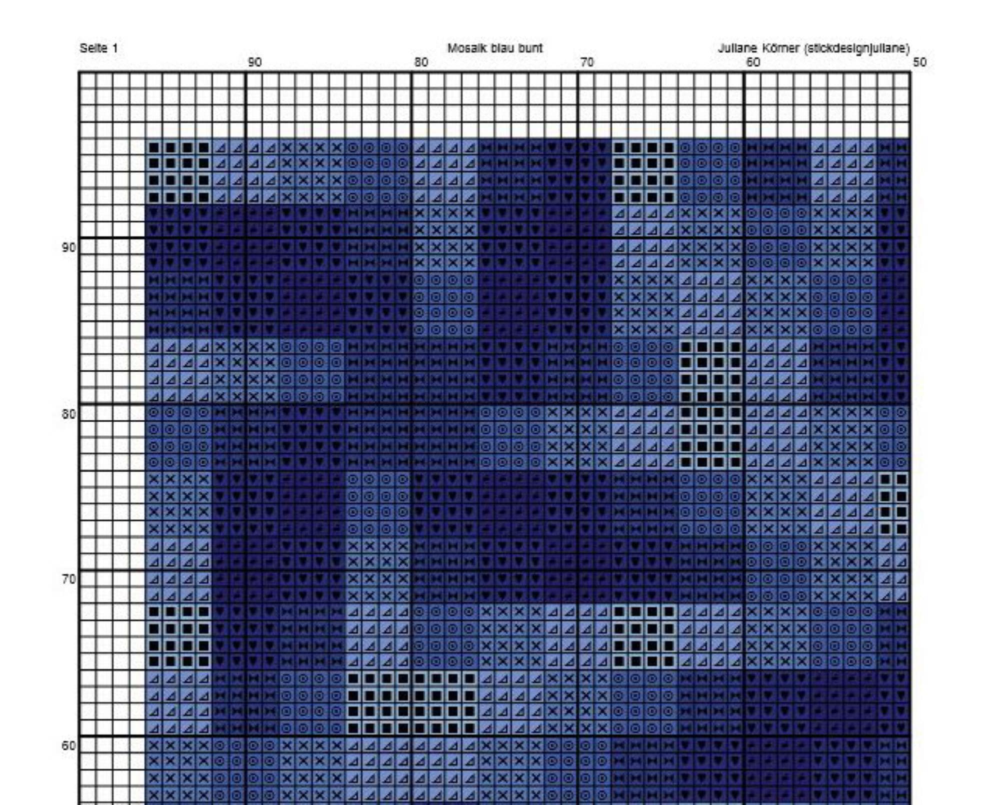 Cross stitch pattern mosaic blue, image size approx. 30 x 30 cm, cross stitch embroidery pattern PDF file instant download