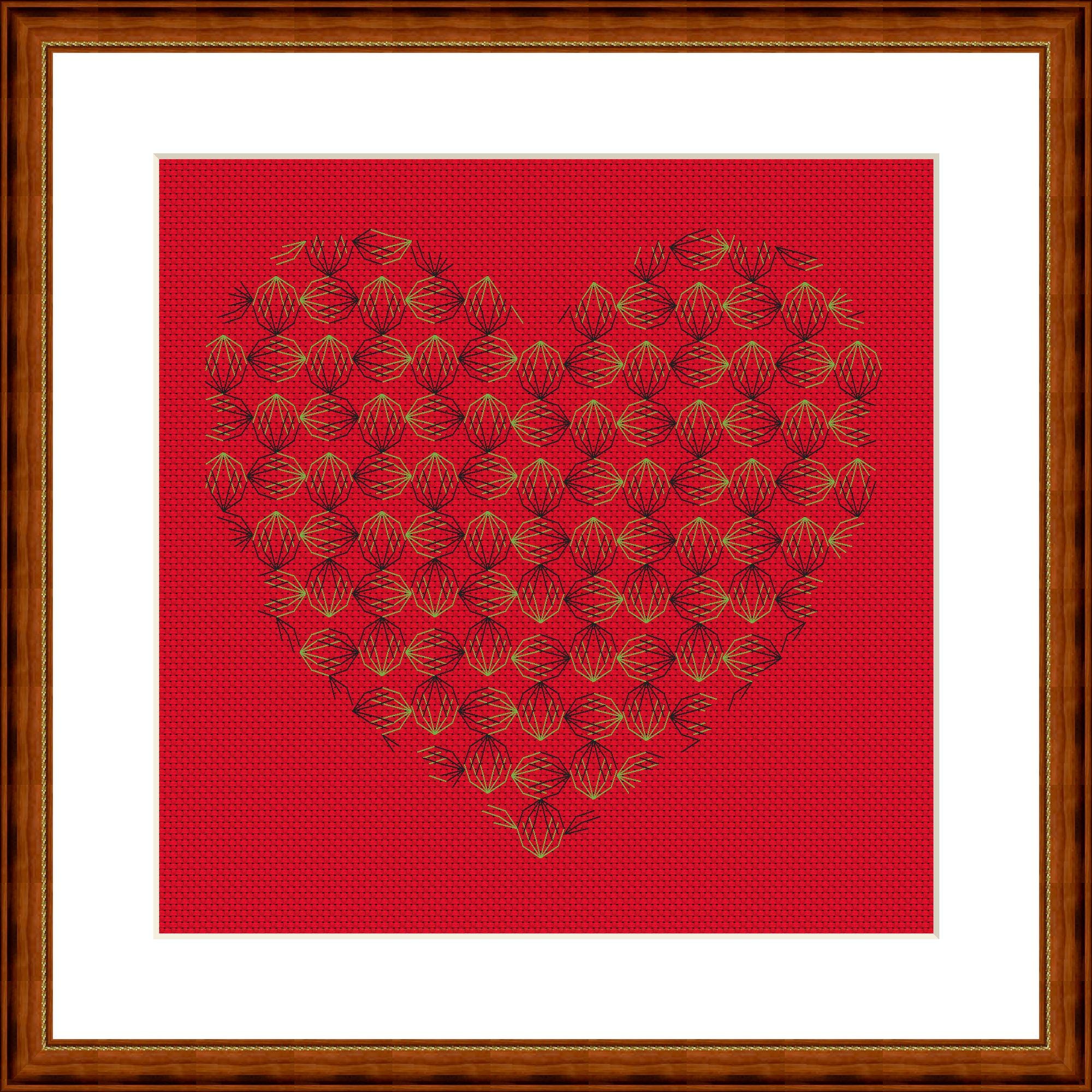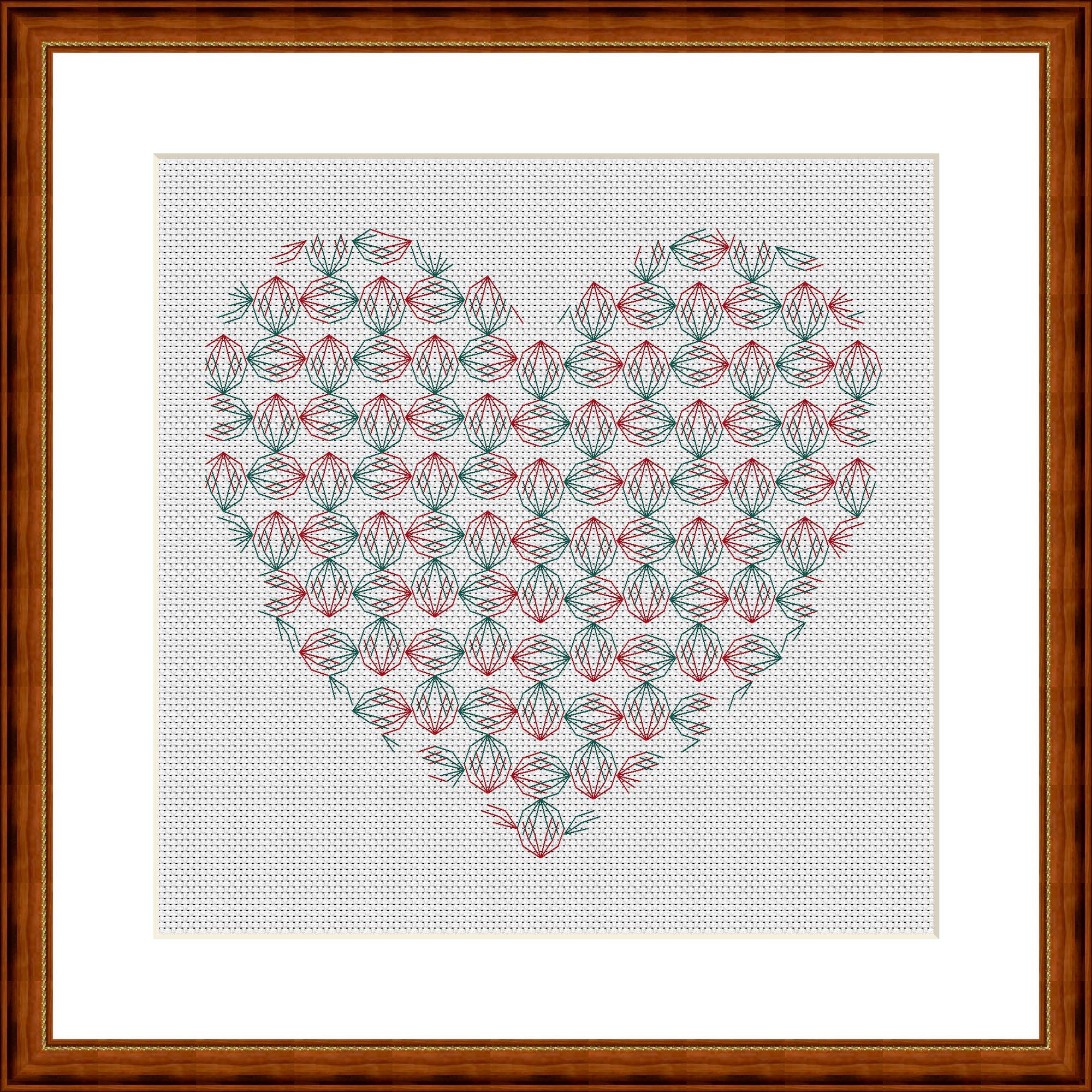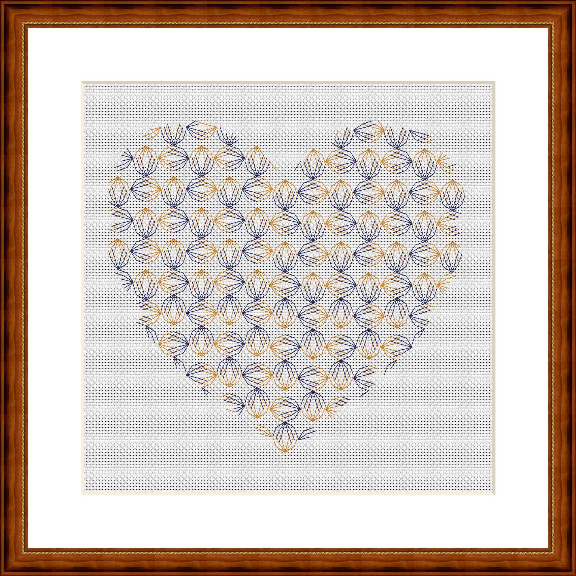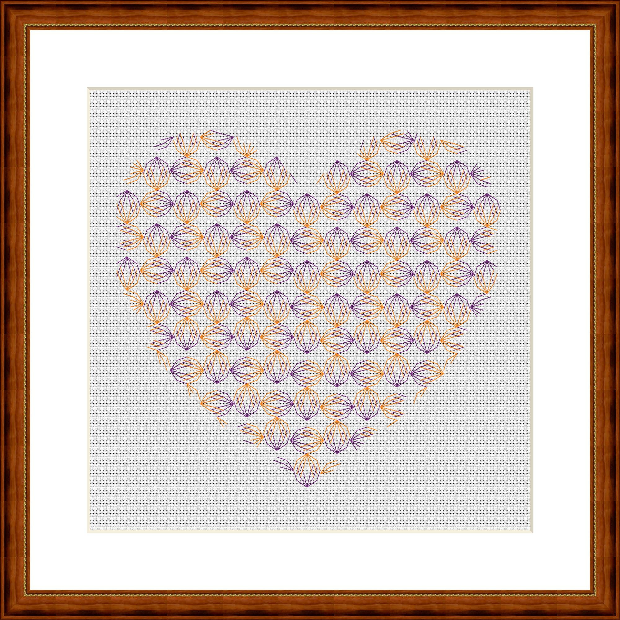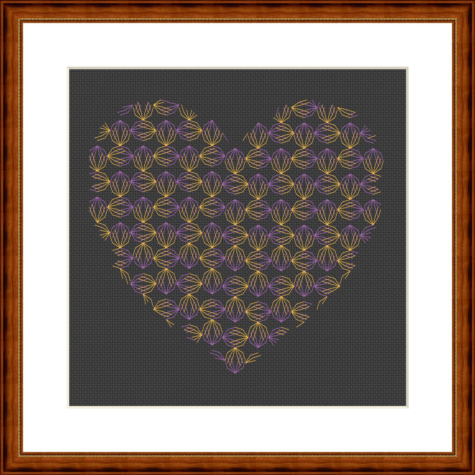 A delicate blackwork heart. There are so many connections and points of contact in the pattern, just like in real life. It's designed for two colors, but of course you can stitch it however you like. Find your own way and be creative.
