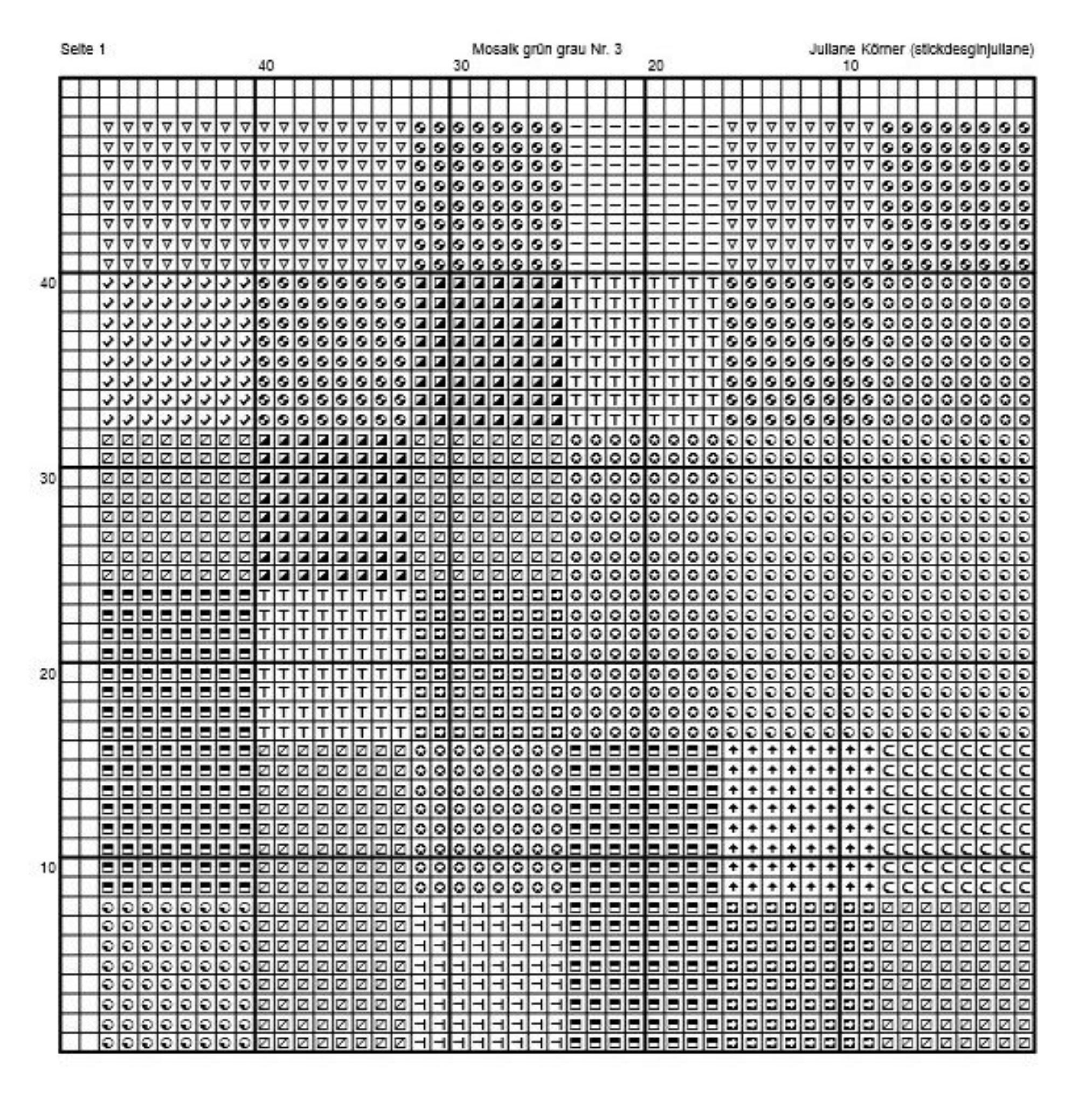 Cross stitch pattern mosaic green grey No. 3, image size approx. 15 x 15 cm, cross stitch embroidery pattern PDF file instant download