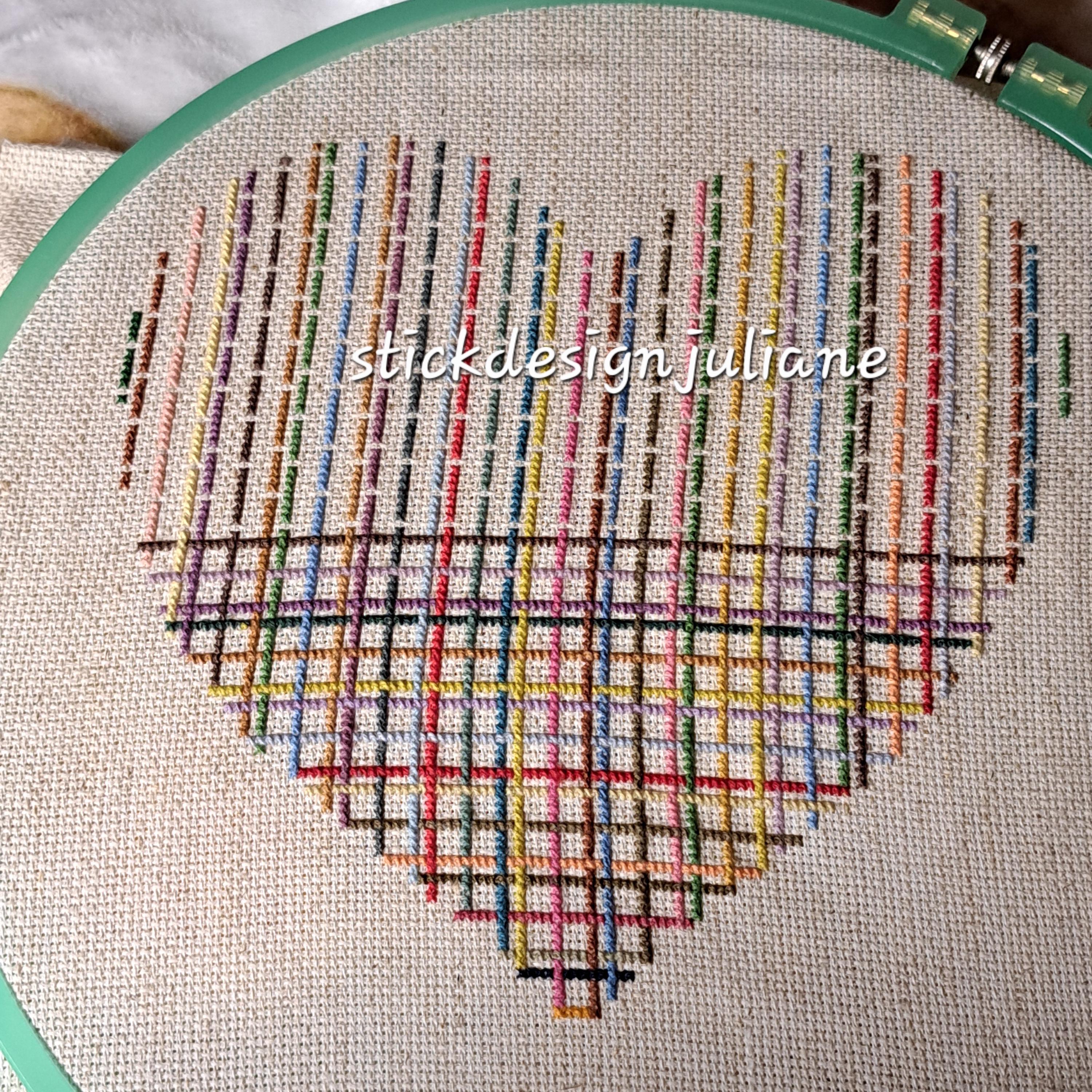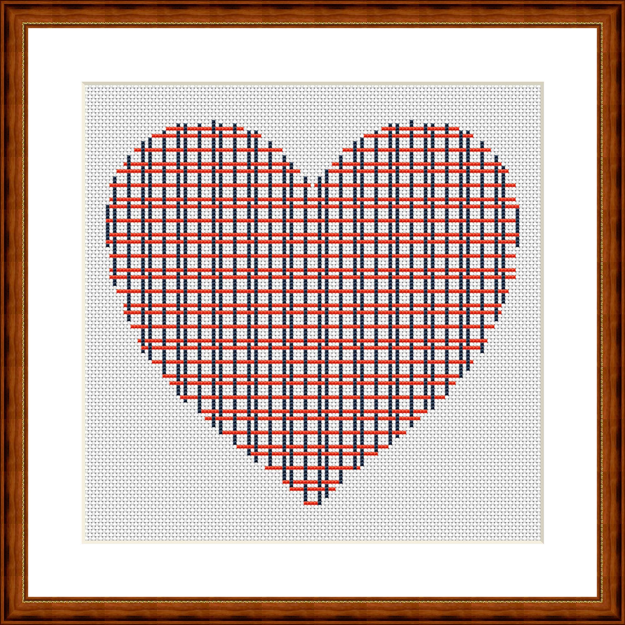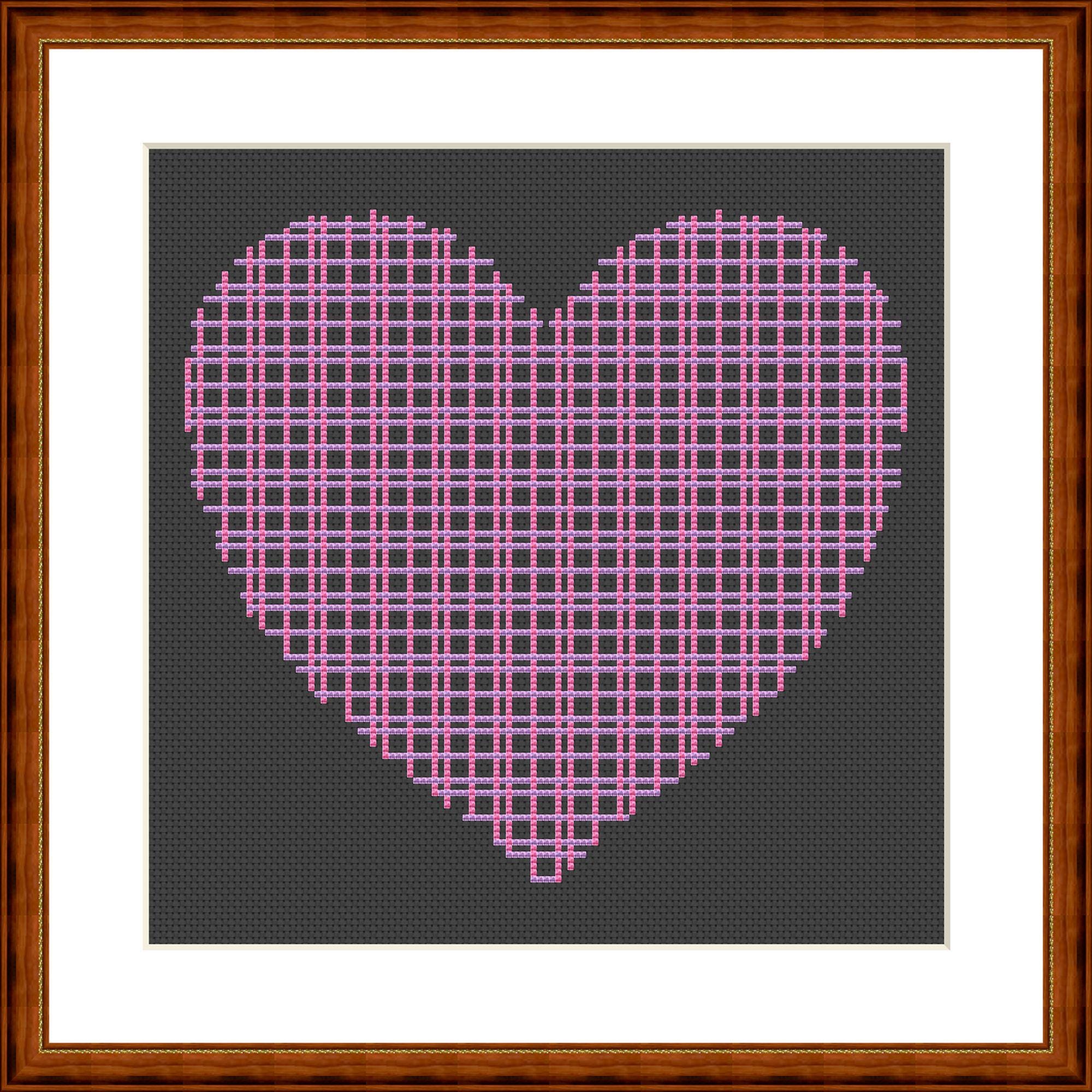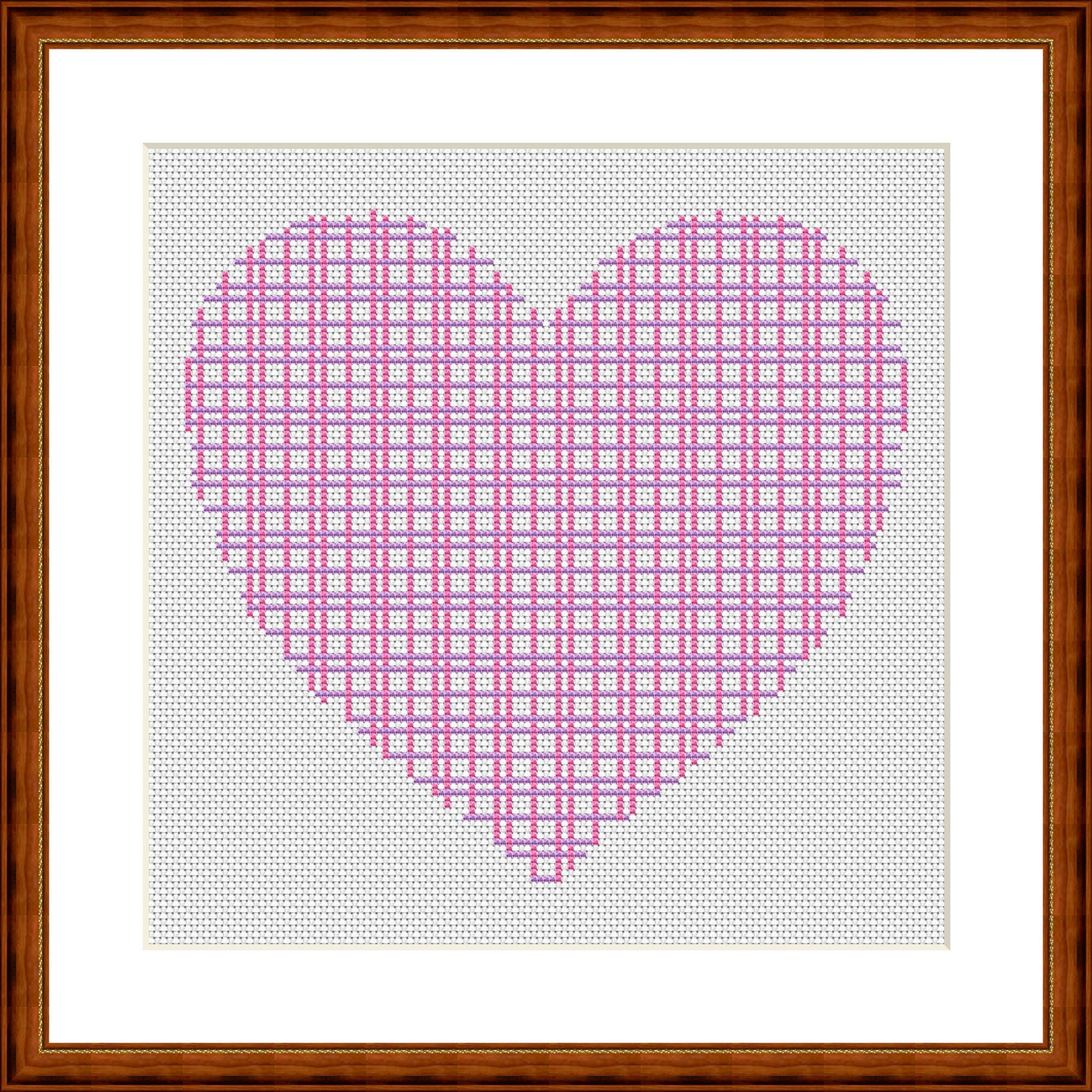 Cross stitch pattern heart, woven checkered, image size approx. 19 x 18 cm, cross stitch pattern PDF file instant download