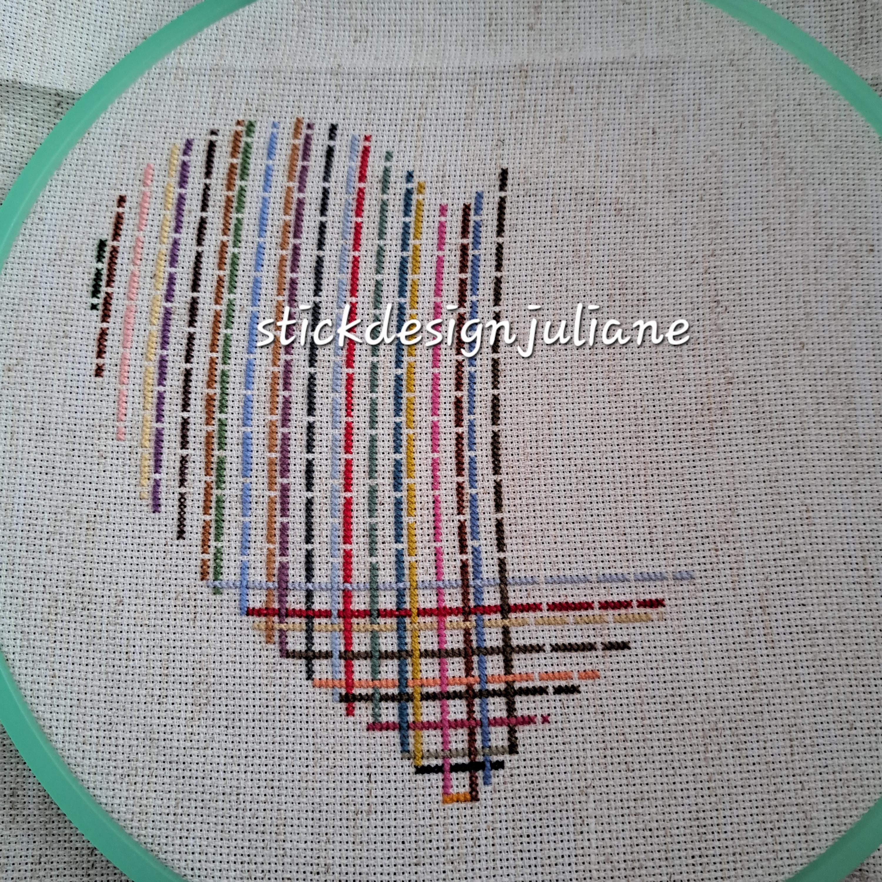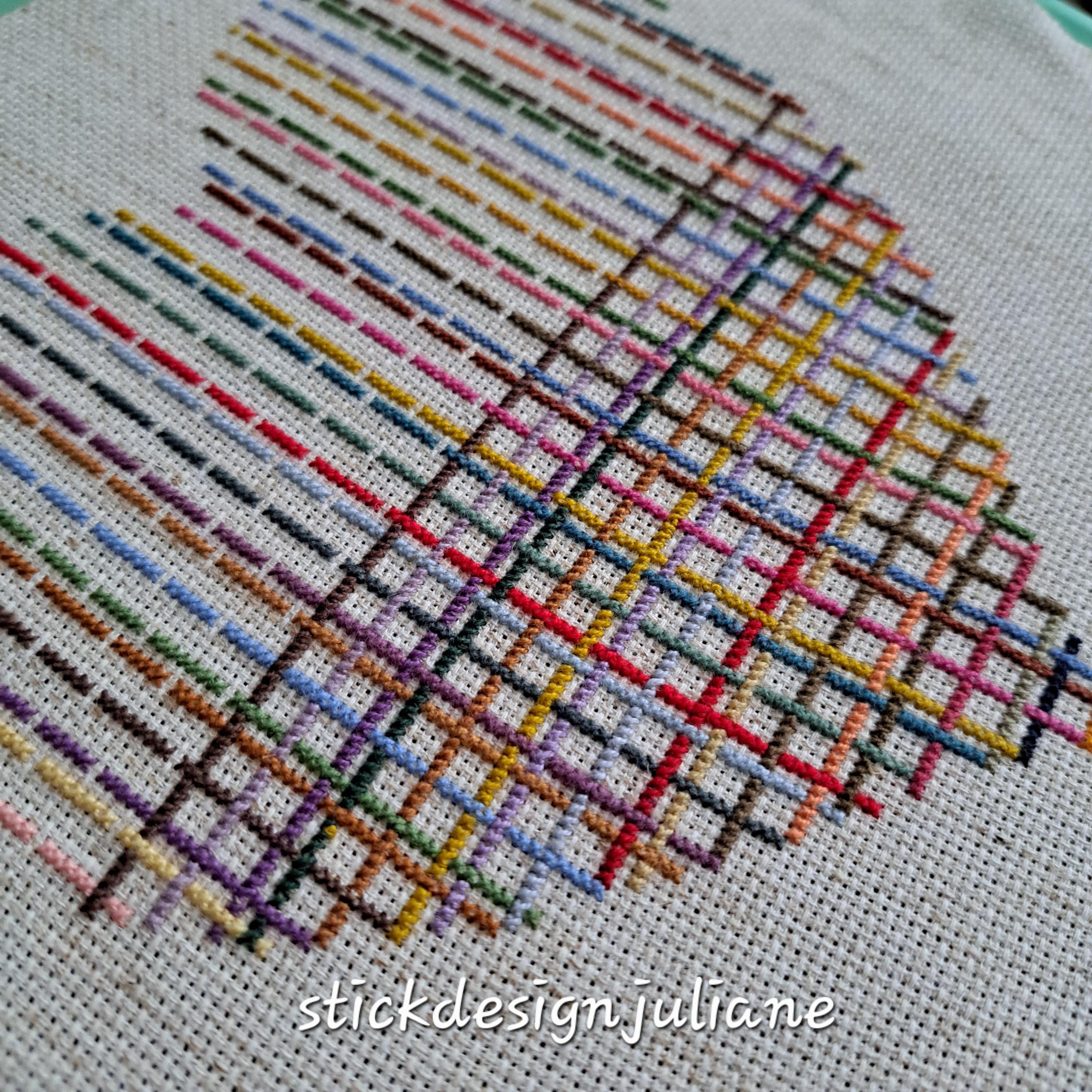 The pattern can be stitched with two colors. Which ones you choose is up to you. In the pattern, it's orange and petrol blue. You can also stitch it with leftover yarn. It will make a lovely picture. Perhaps a Mother's Day gift? Or for another occasion.