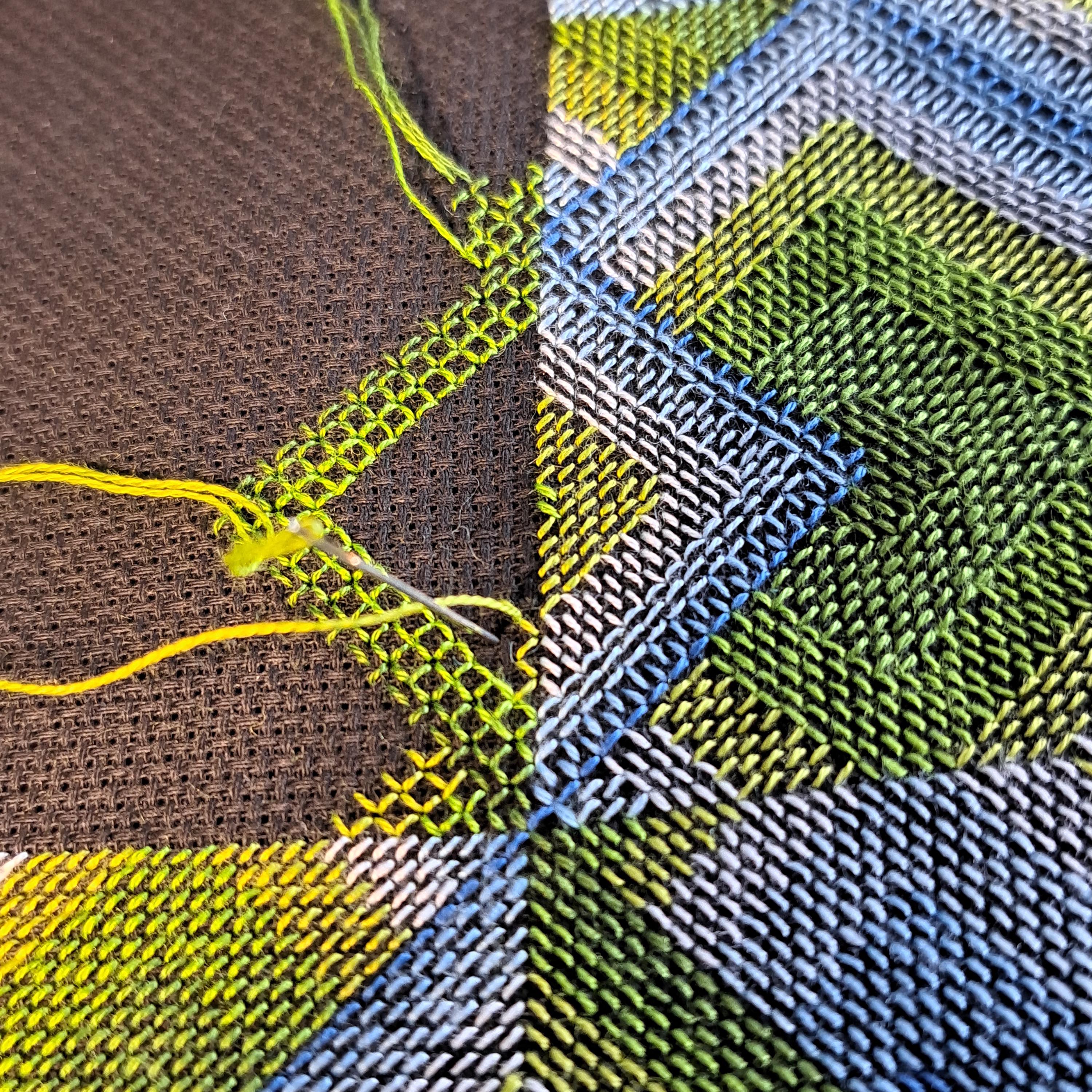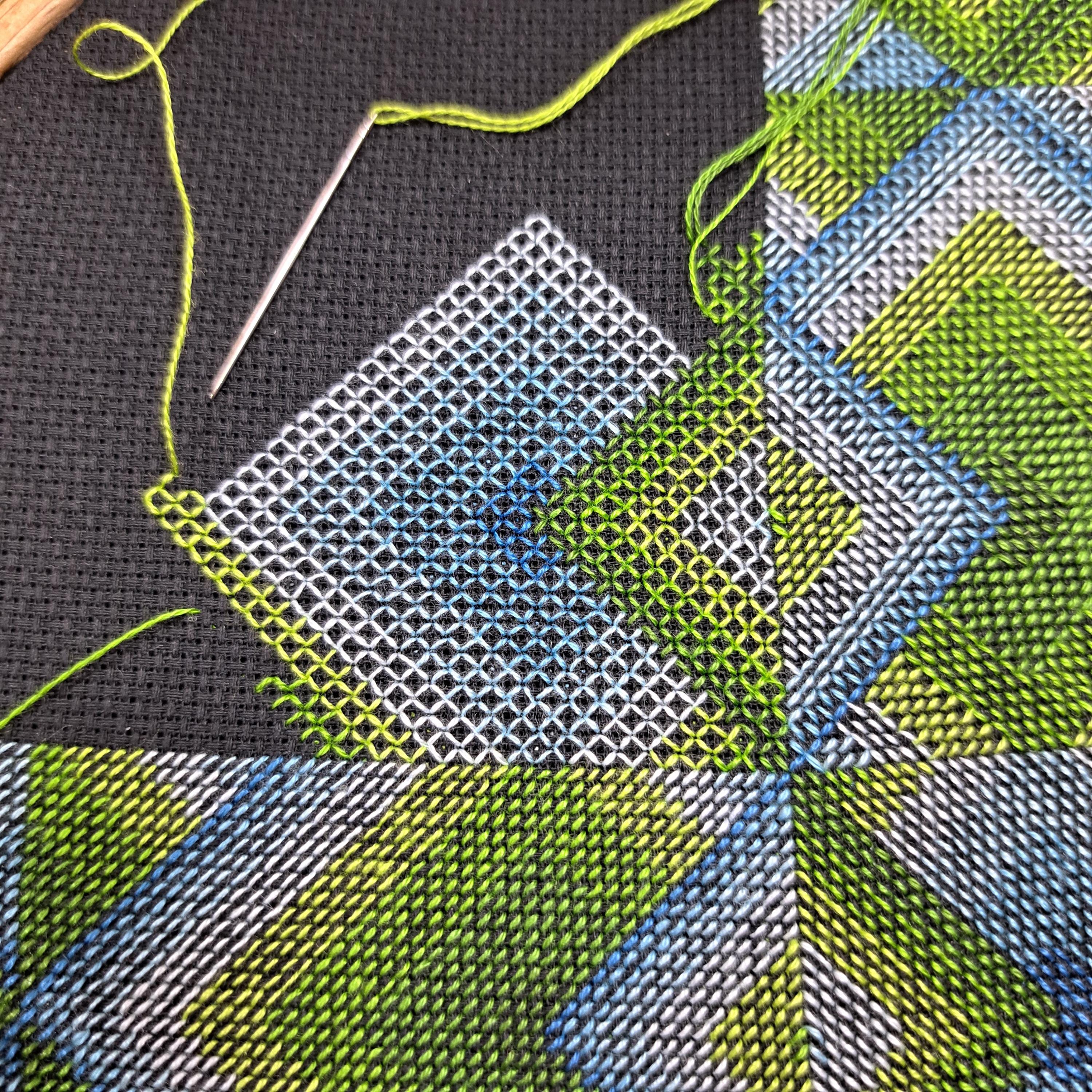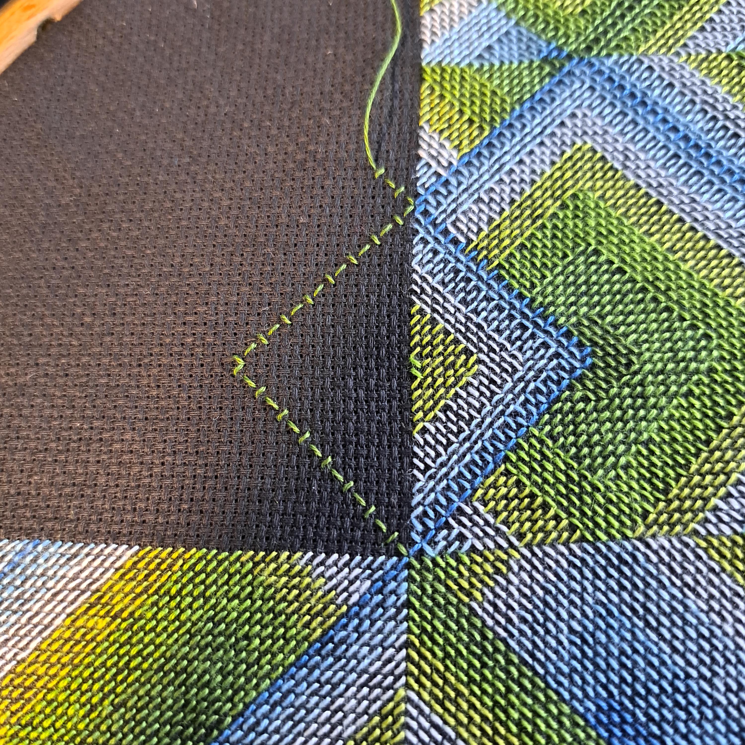 Ja jetzt kommt der letzte Teil. Der halbe Kreuzstich wird auch innerhalb jeder Farbe im Wechsel gestickt. Ob das gut geht?
