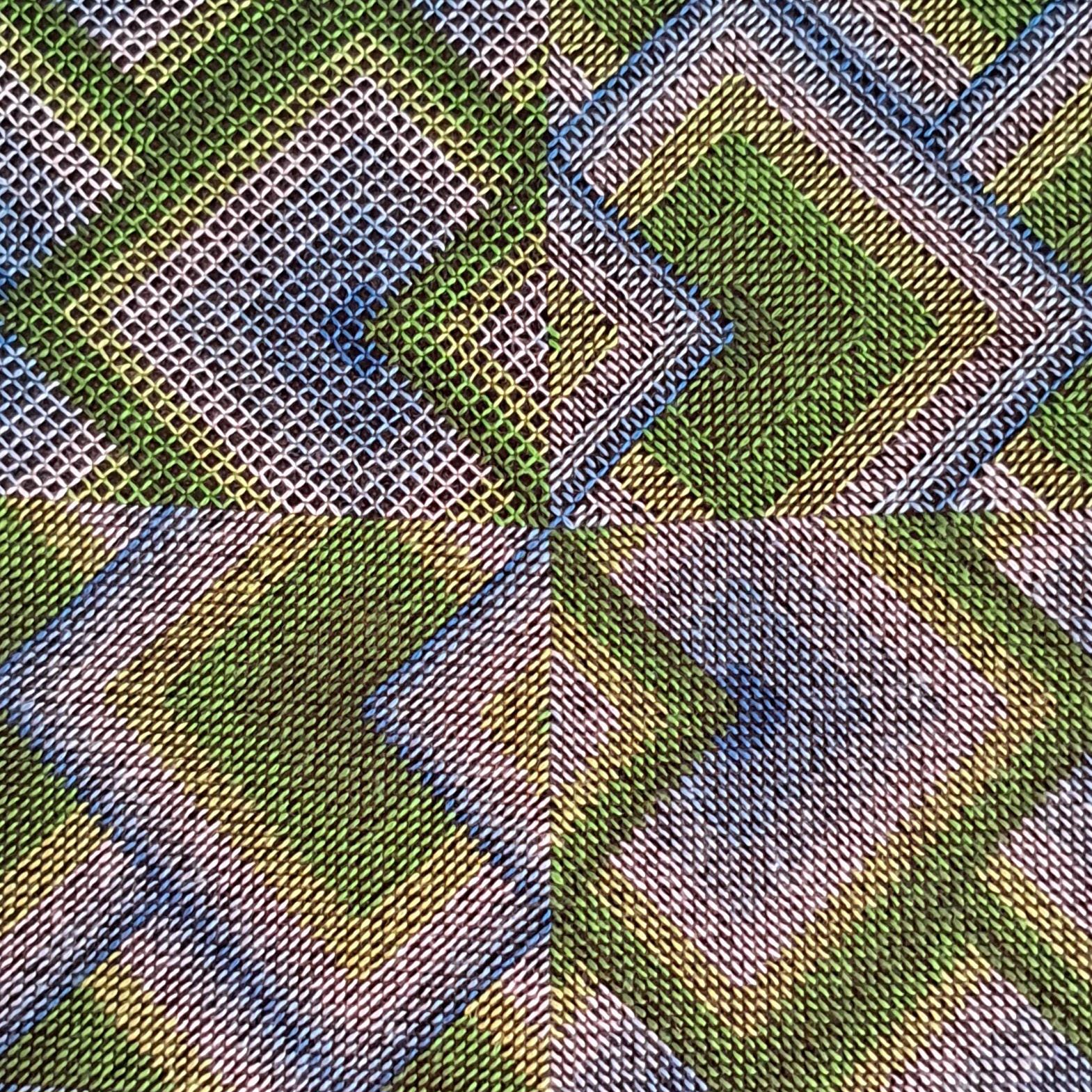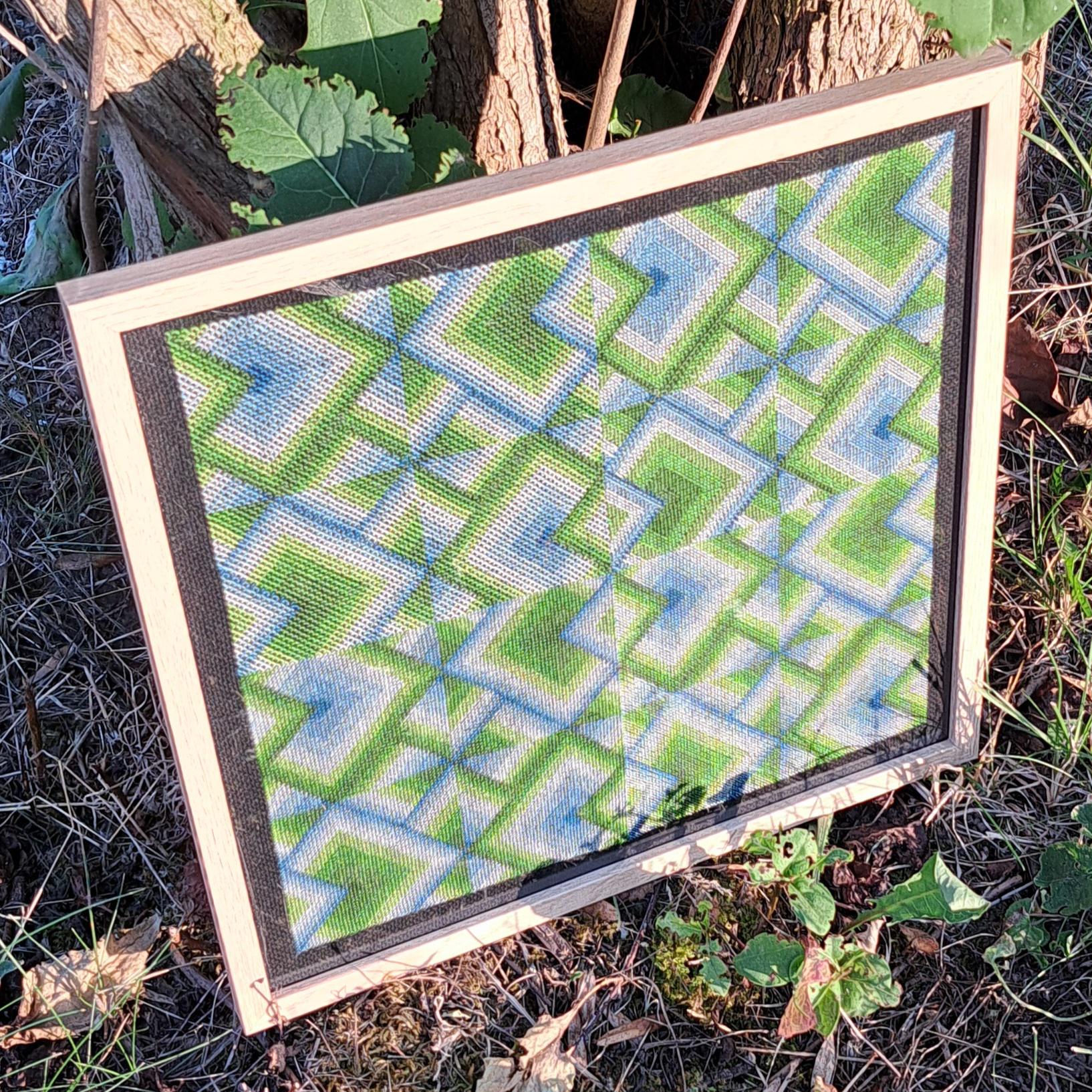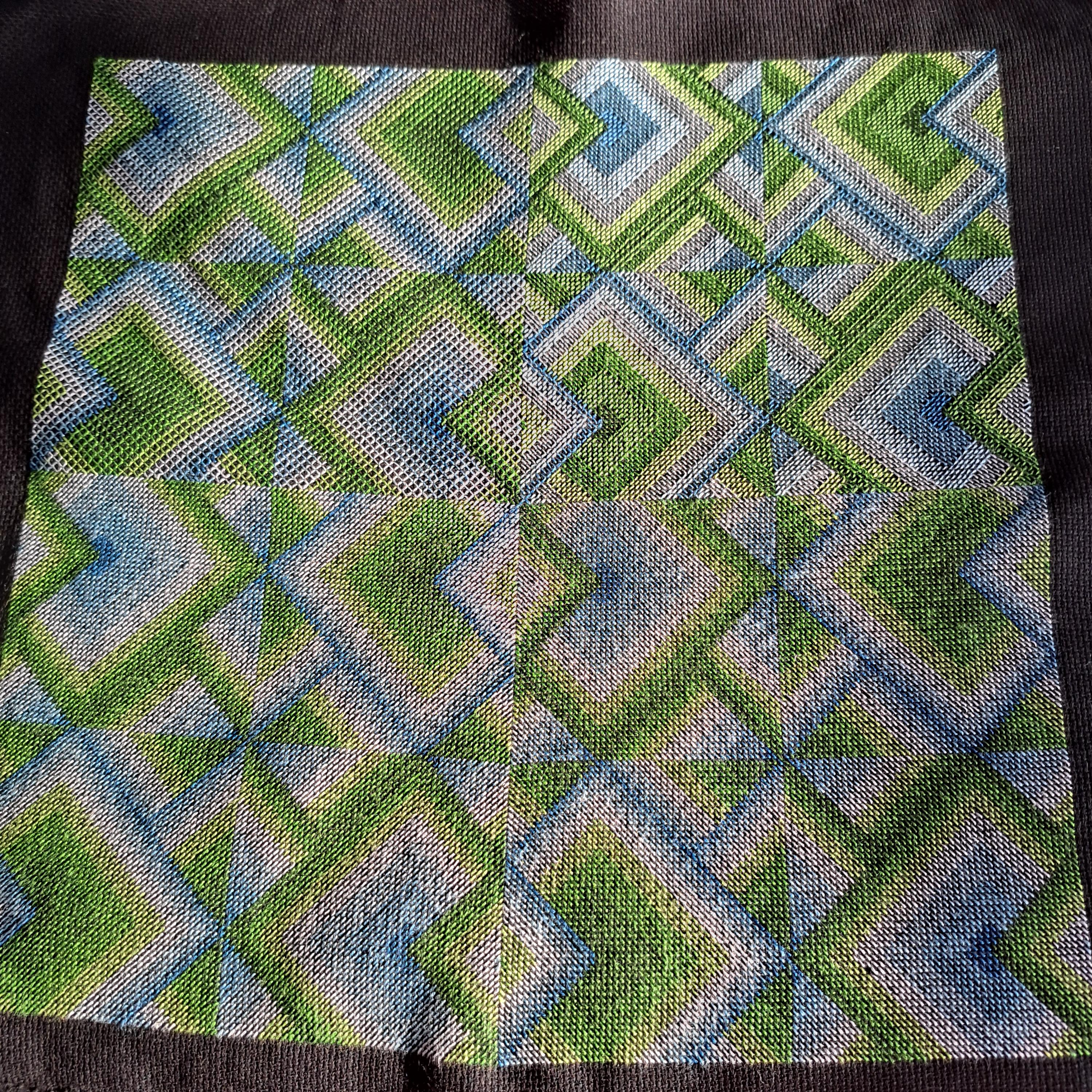 Lust zum Nachsticken bekommen? Die Stickvorlage Patchwork geometrisch grün blau gibt es hier in meinem Shop stickdesignjuliane.com